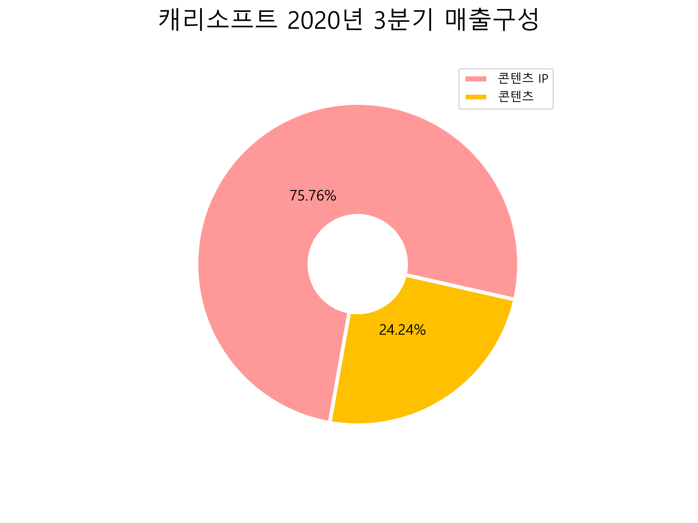 캐리소프트의 2020년 3분기 매출구성입니다.