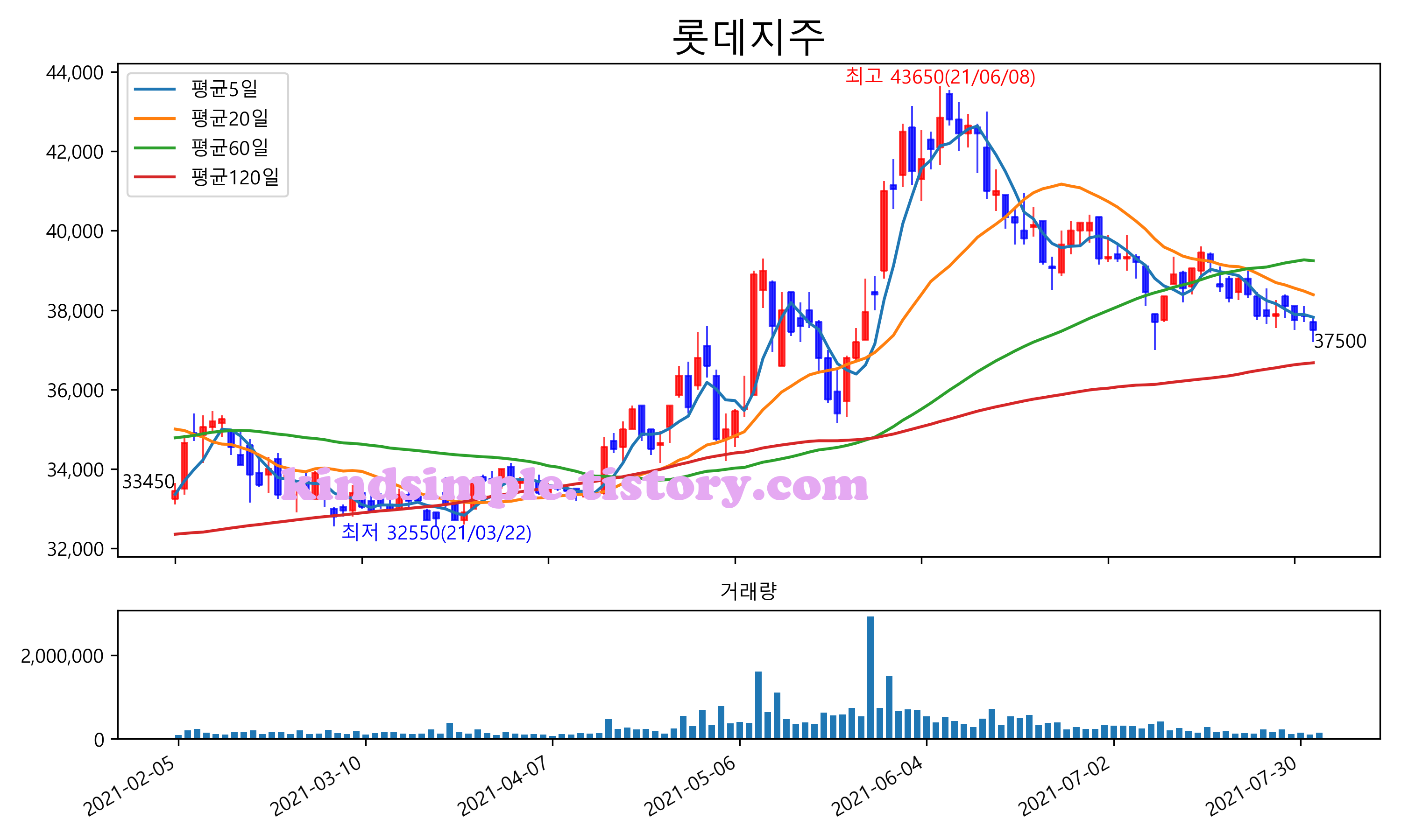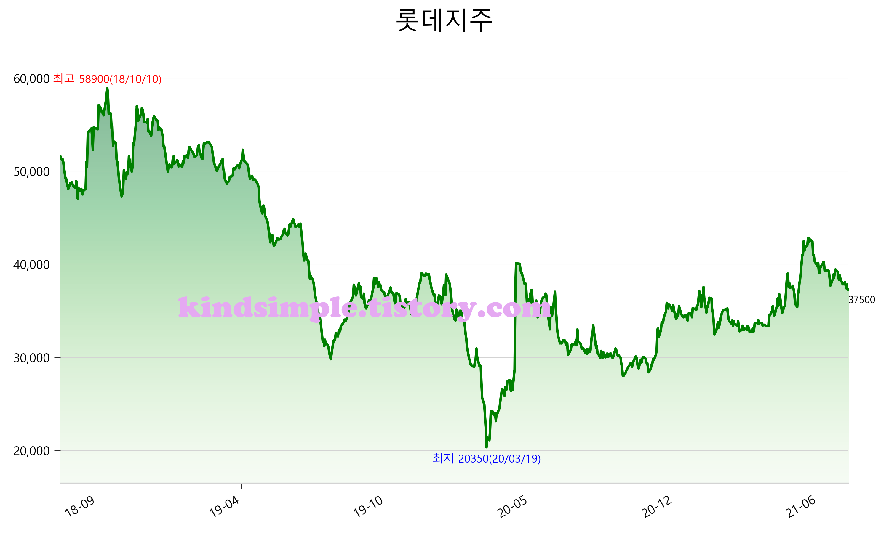 8월 4일 기준 주가는 37,500원 입니다. 아래는 최근 3년간의 주가흐름입니다.