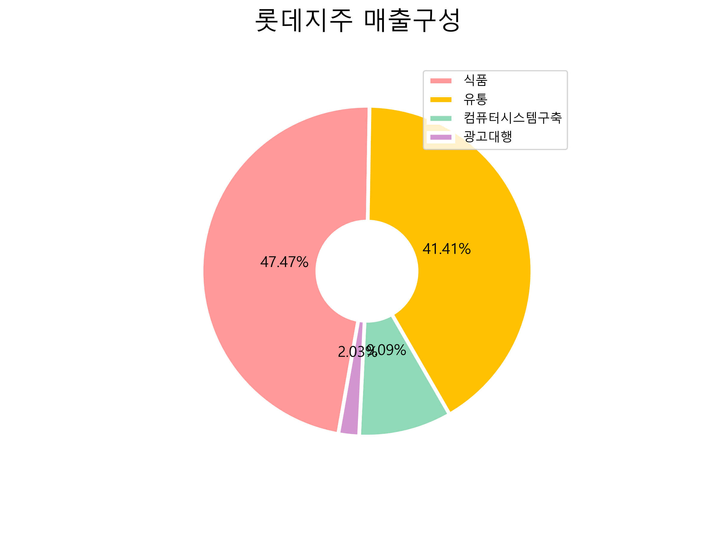 - 롯데칠성음료(주), 롯데푸드(주), 롯데쇼핑(주) 등 총 23개의 국내 자회사를 보유하고 있으며, 영업수익은 자회사 및 기타 투자회사로부터의 배당수익, 상표권사용수익, 임대수익 등으로 구성됨.