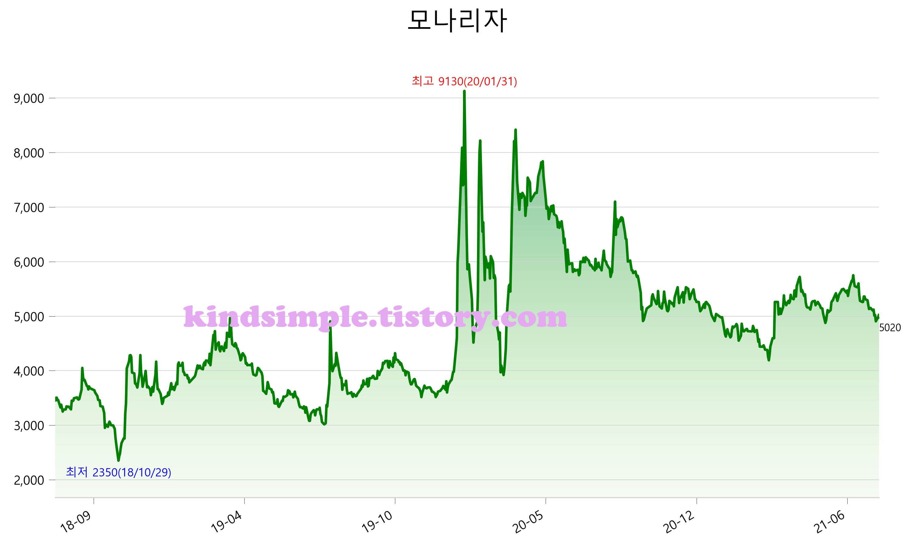 8월 4일 기준 주가는 5,020원 입니다. 아래는 최근 3년간의 주가흐름입니다.