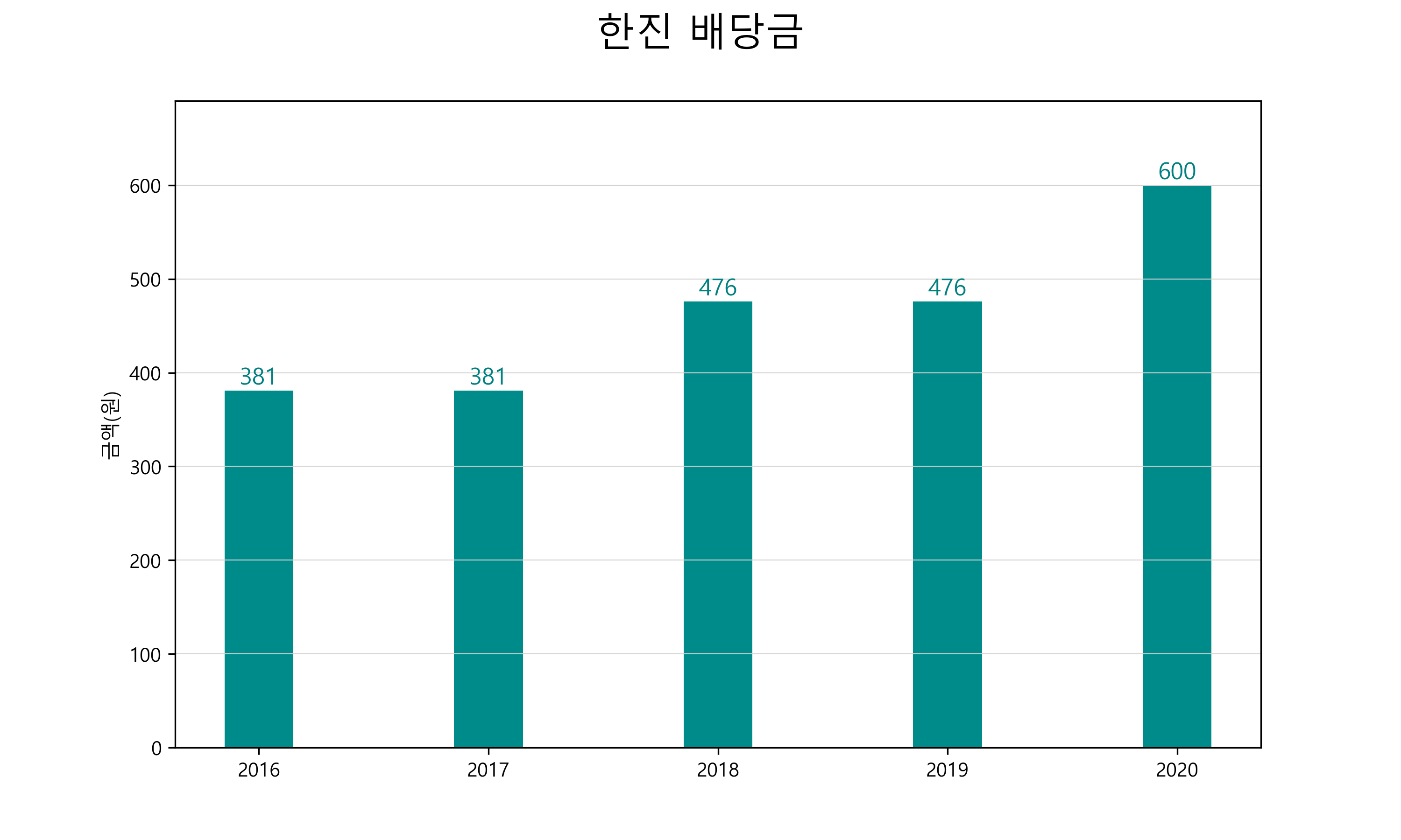 한진은 1년에 1번 배당을 실시하고 있으며 2021년 4월 중에 배당금을 지급합니다.