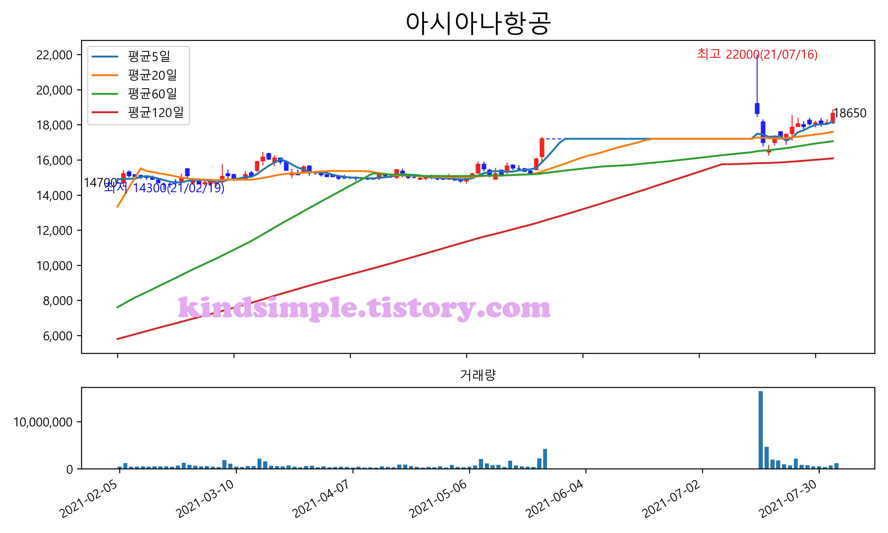 최근 6개월간 캔들차트 및 이동평균선입니다.