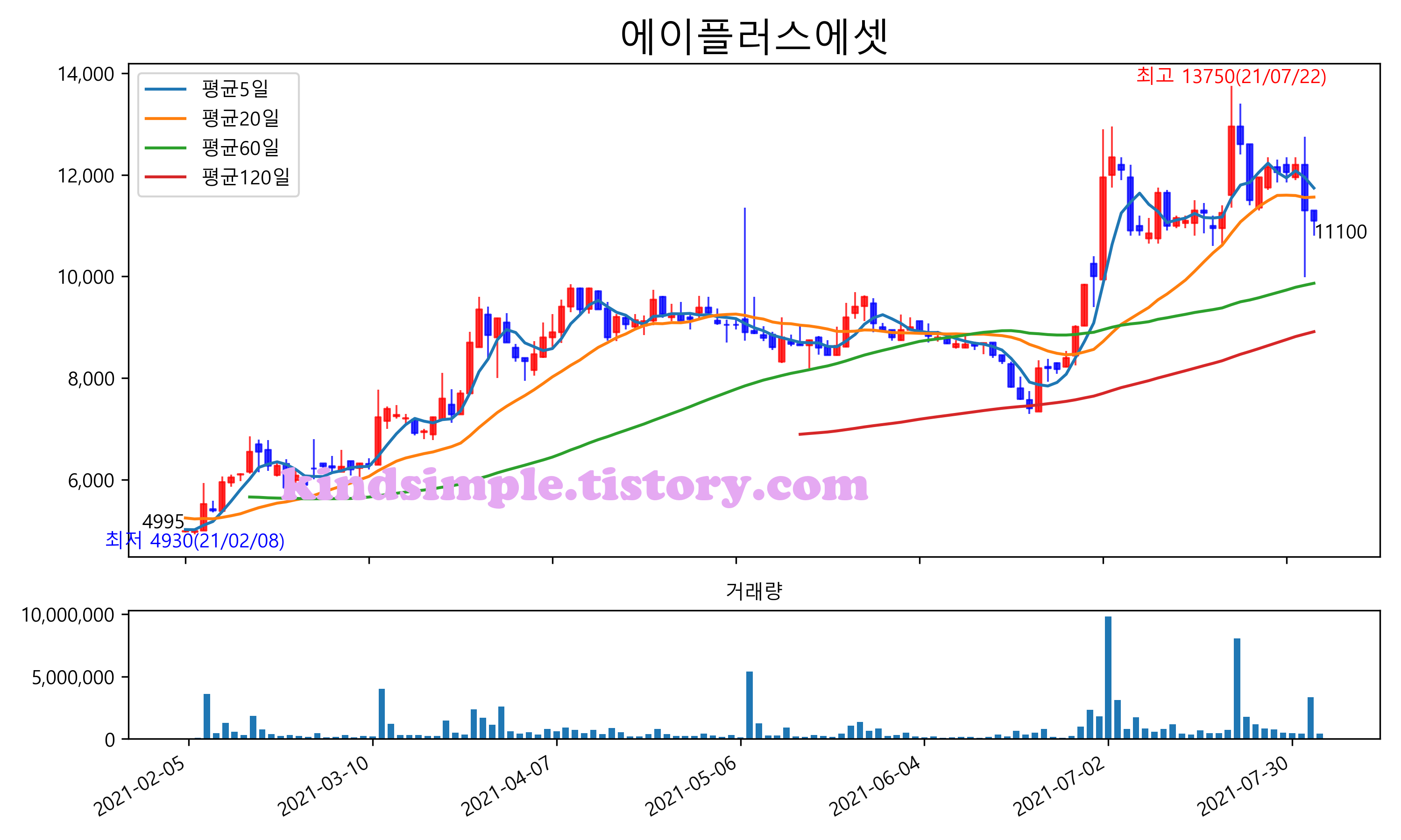 최근 6개월간 캔들차트 및 이동평균선입니다.