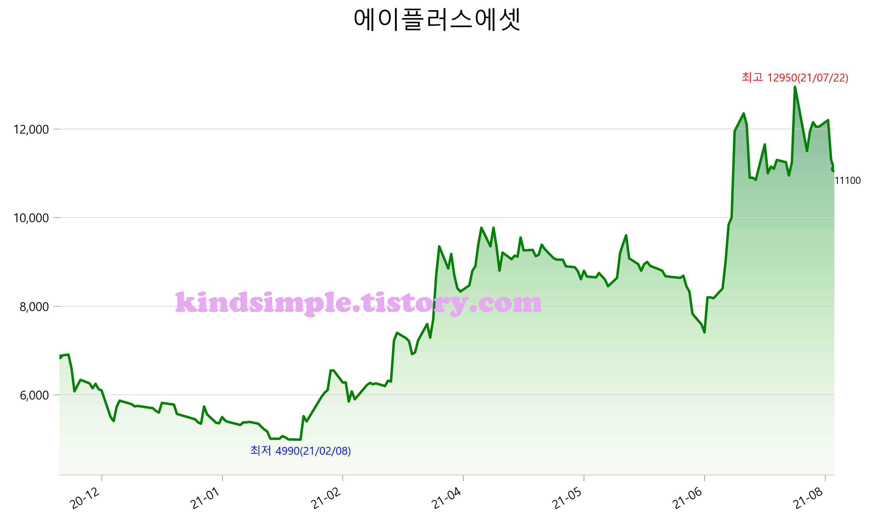 52주 최고가는 12,950원(2021-07-22), 52주 최저가는 4,990원(2021-02-08)으로 52주간 변동률은 61.3% 입니다.