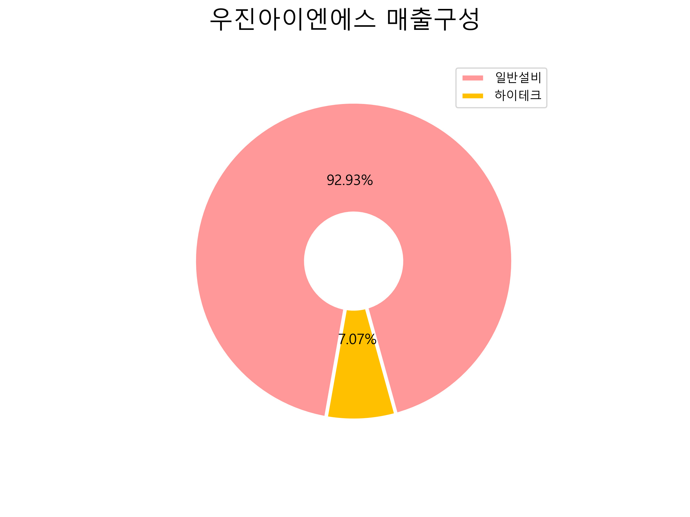 - 사업부문은 하이테크 사업부문과 일반설비 사업부문으로 구성되어 있으며, 90% 이상의 매출이 일반설비 부문에서 창출됨.