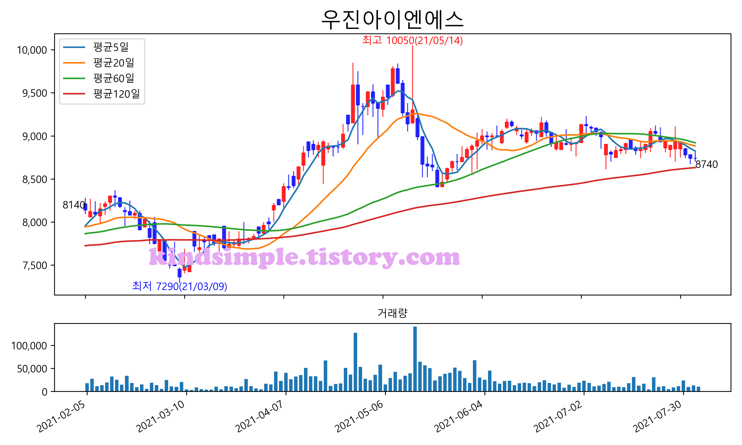 최근 6개월간 캔들차트 및 이동평균선입니다.