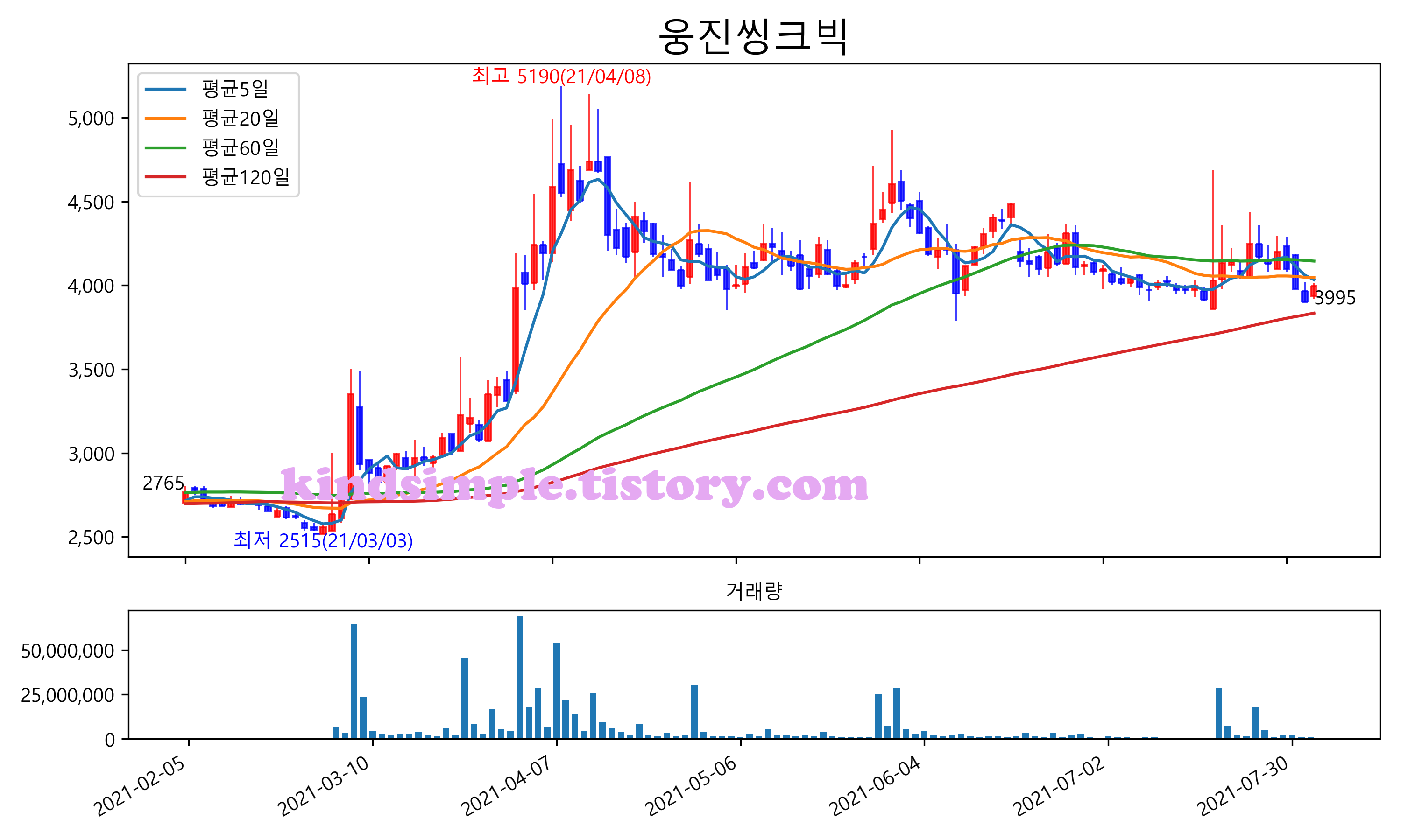 8월 4일 기준 주가는 3,995원 입니다. 아래는 최근 3년간의 주가흐름입니다.