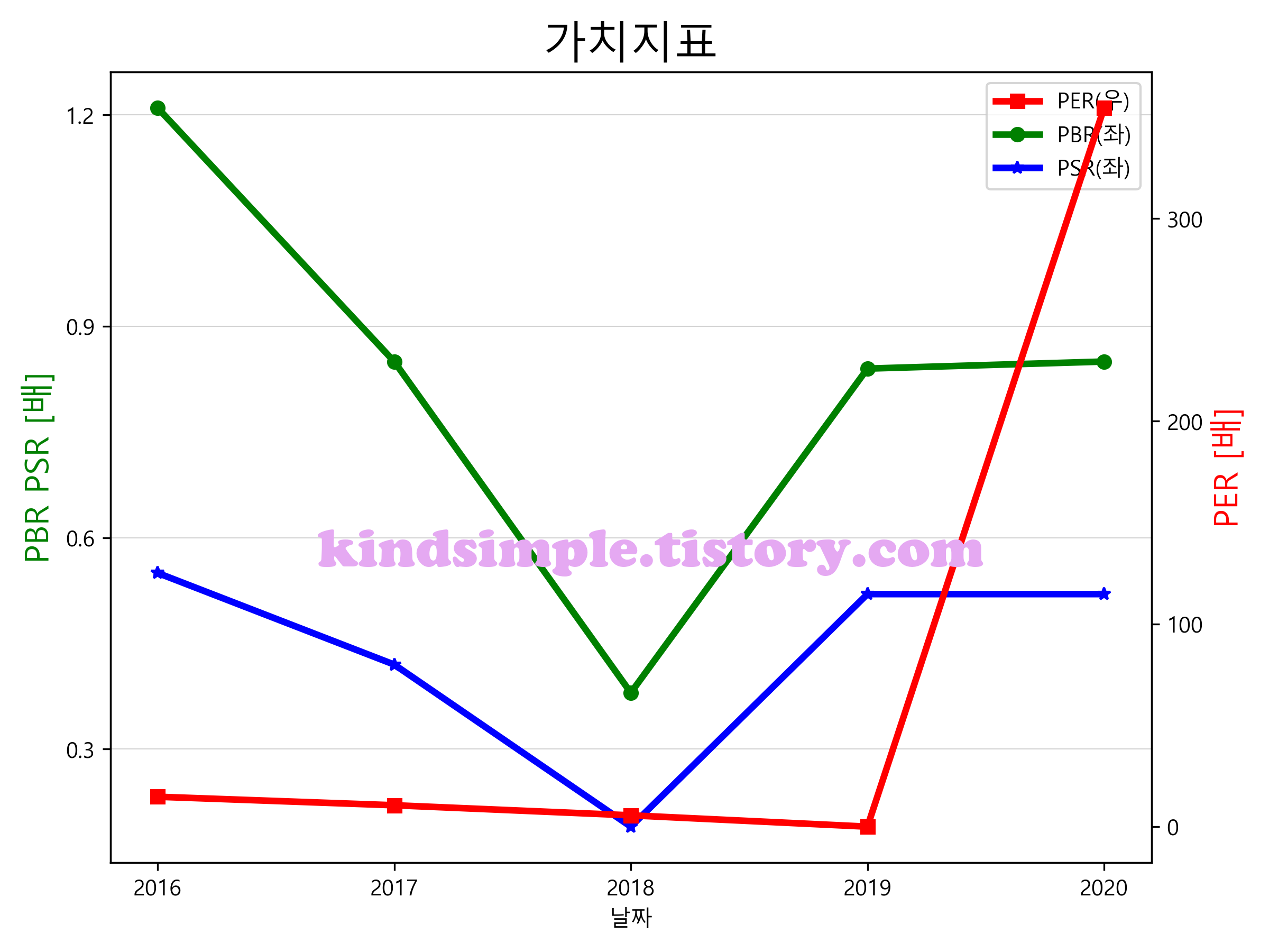 웅진씽크빅의 PER, PBR, PSR입니다.