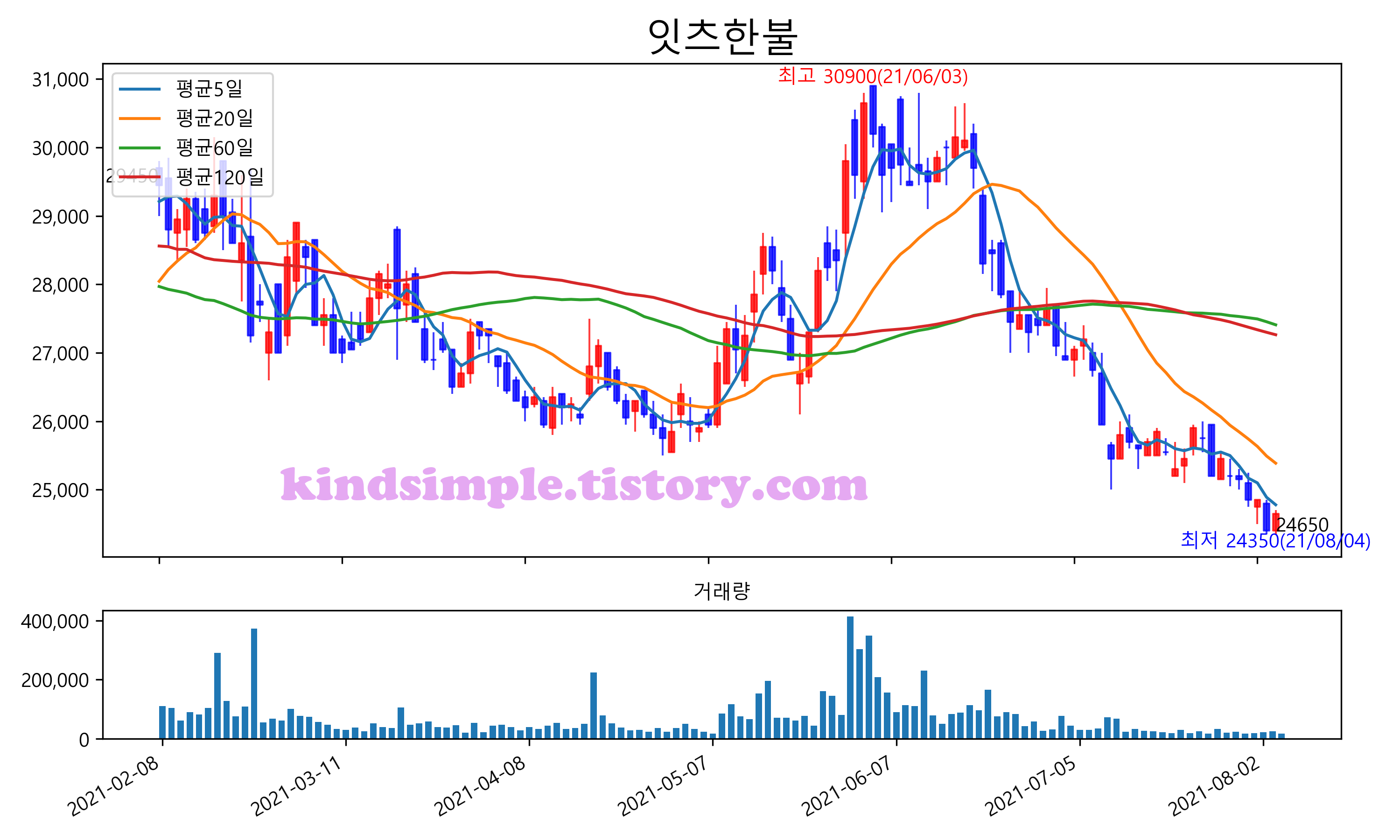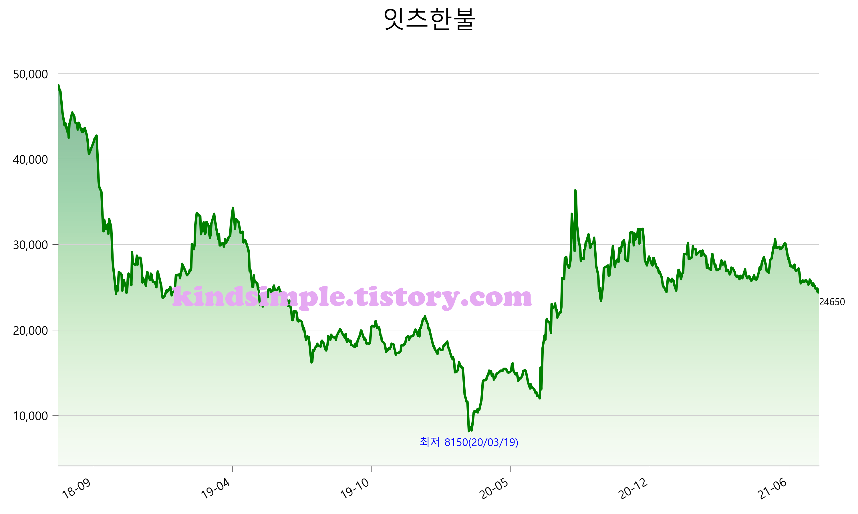 8월 5일 기준 주가는 24,650원 입니다. 아래는 최근 3년간의 주가흐름입니다.