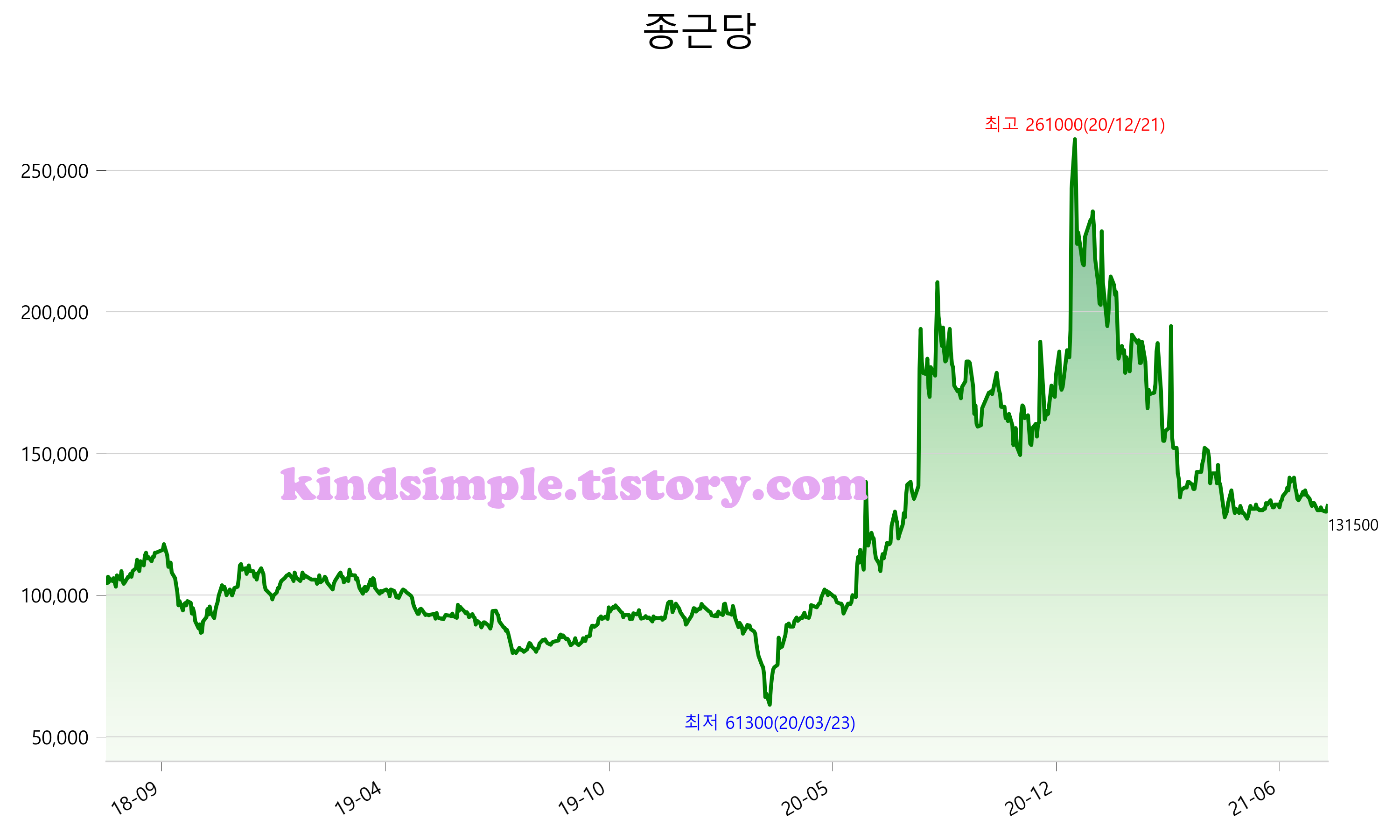 8월 5일 기준 주가는 131,500원 입니다. 아래는 최근 3년간의 주가흐름입니다.