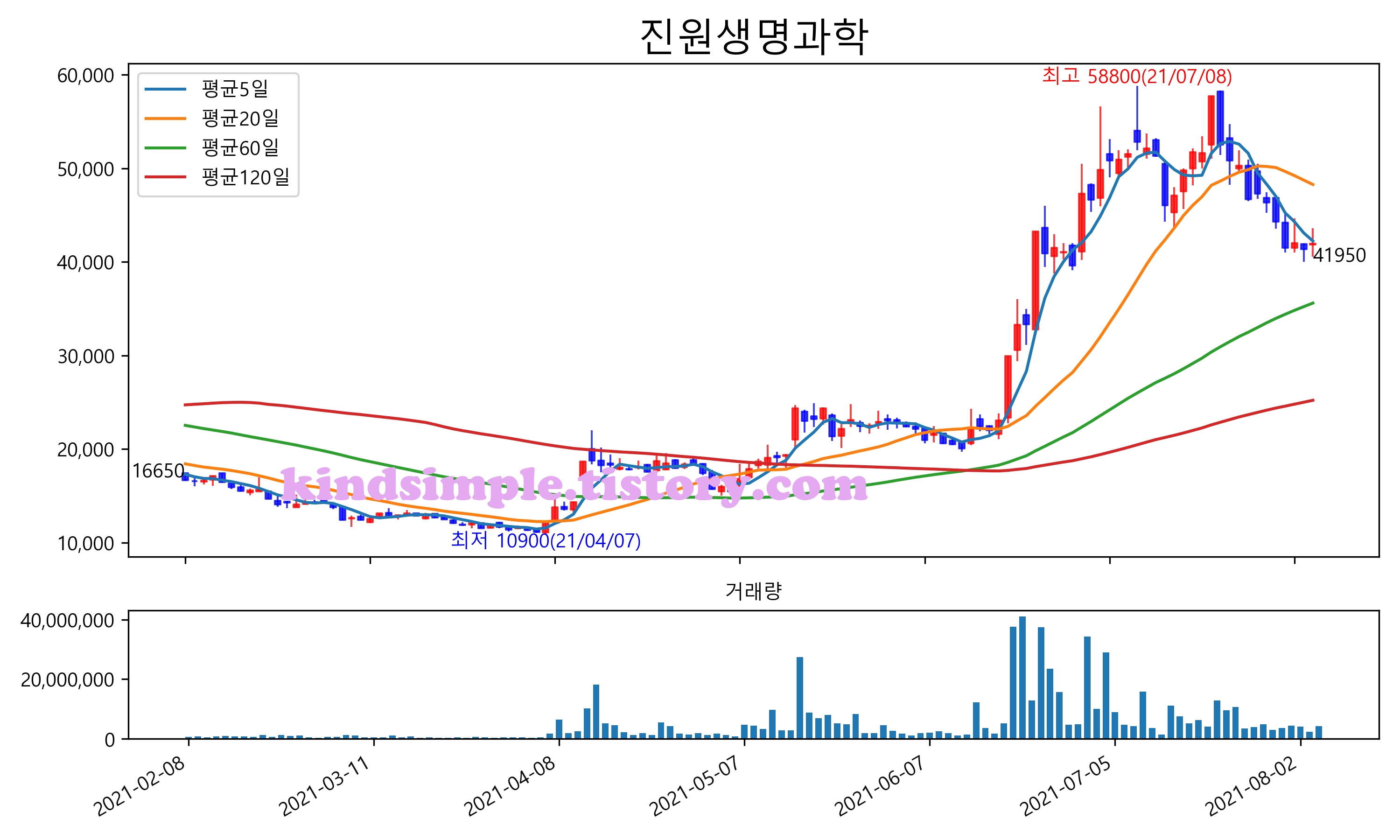 8월 5일 기준 주가는 41,950원 입니다. 아래는 최근 3년간의 주가흐름입니다.