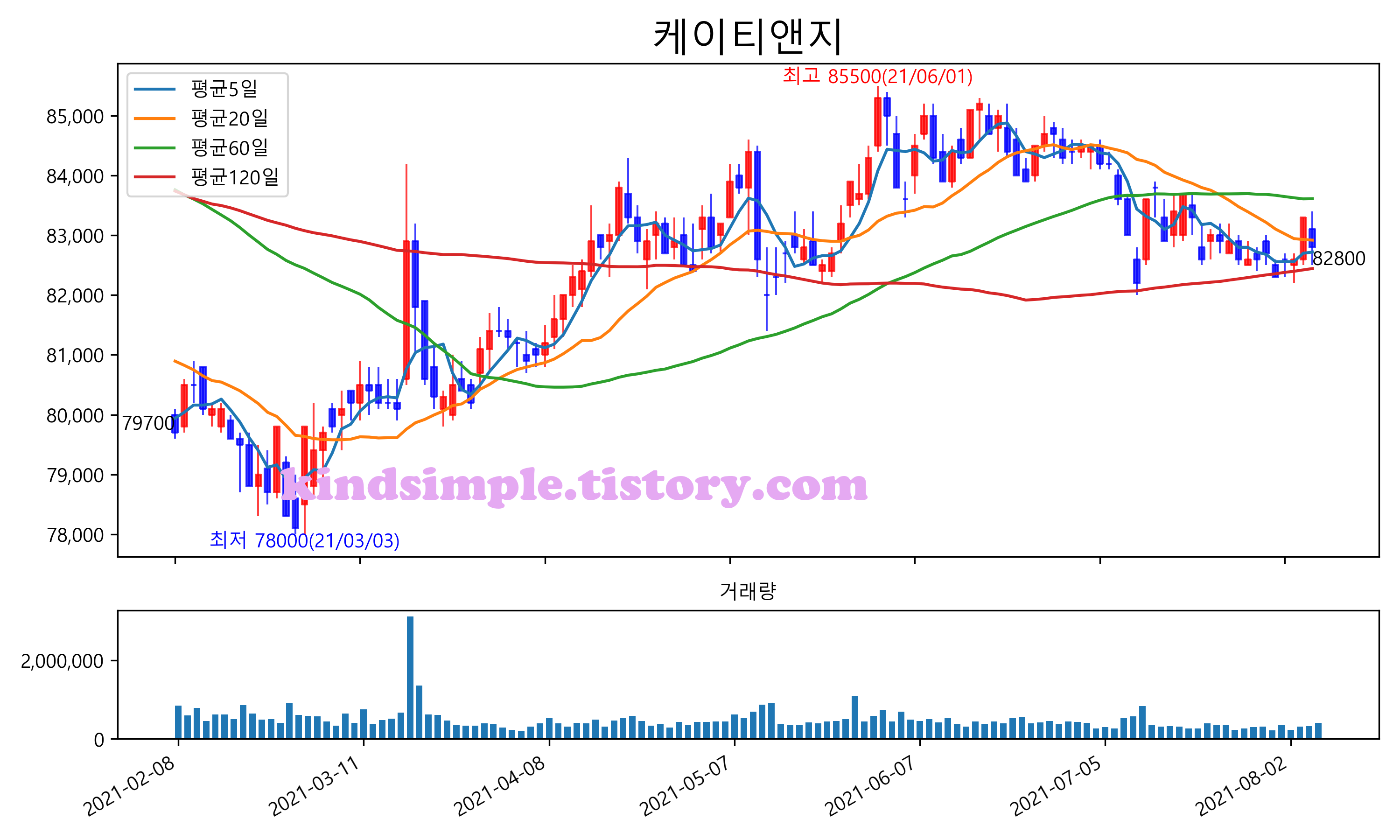 8월 5일 기준 주가는 82,800원 입니다. 아래는 최근 3년간의 주가흐름입니다.