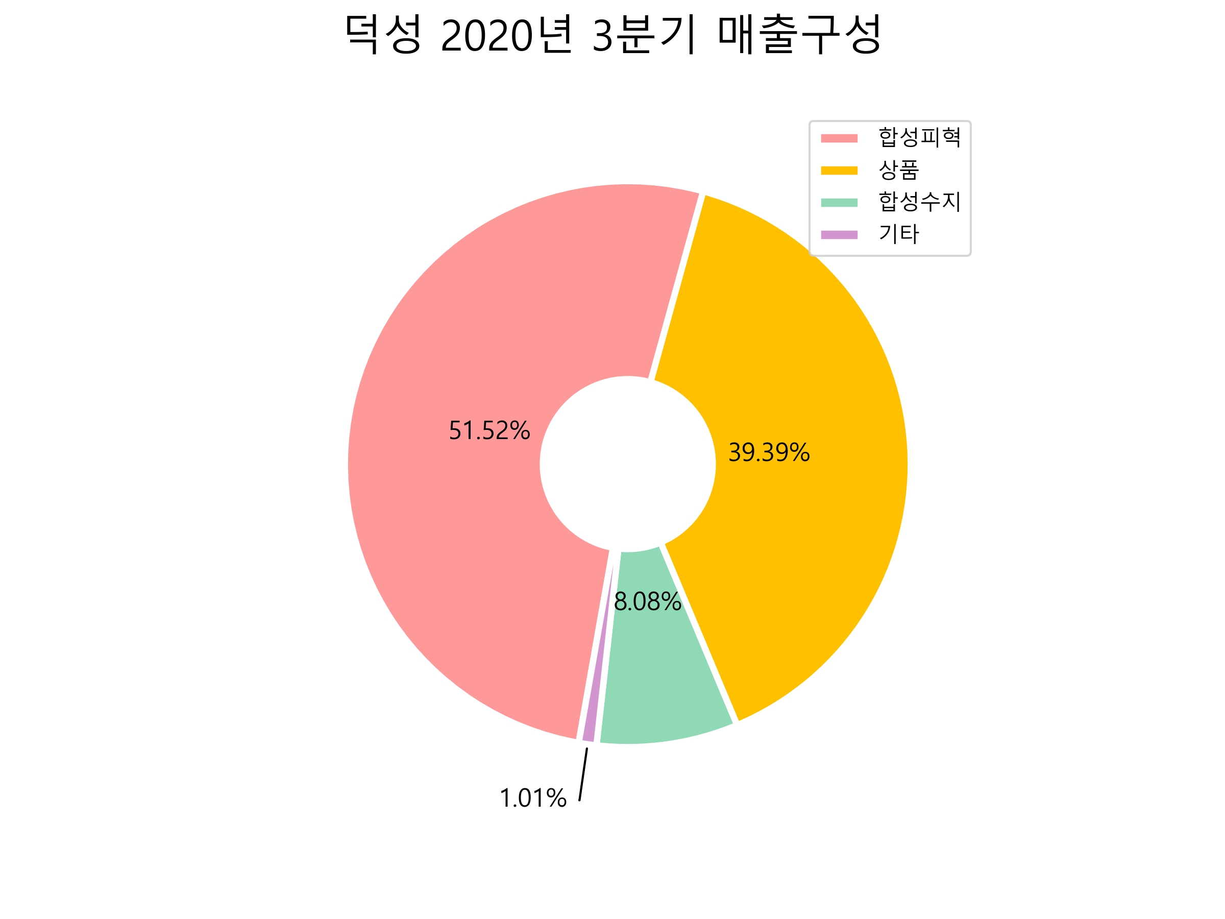 덕성의 2020년 3분기 매출구성입니다.
