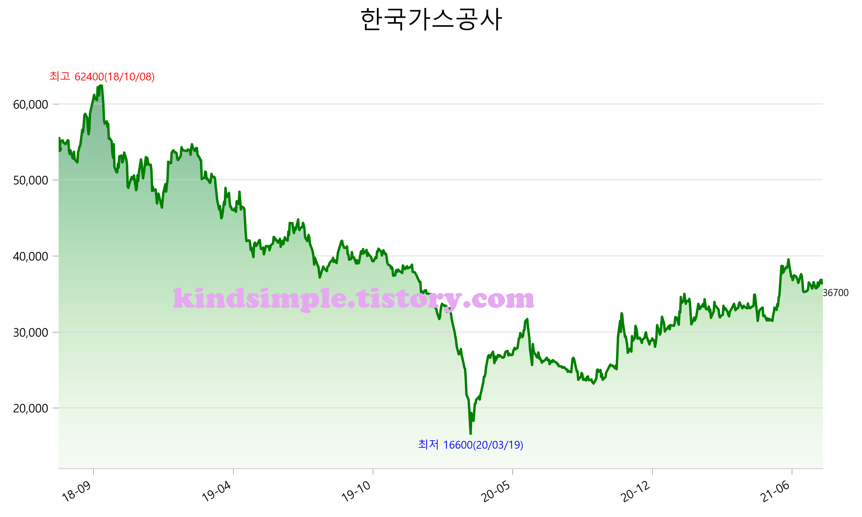 8월 5일 기준 주가는 36,700원 입니다. 아래는 최근 3년간의 주가흐름입니다.