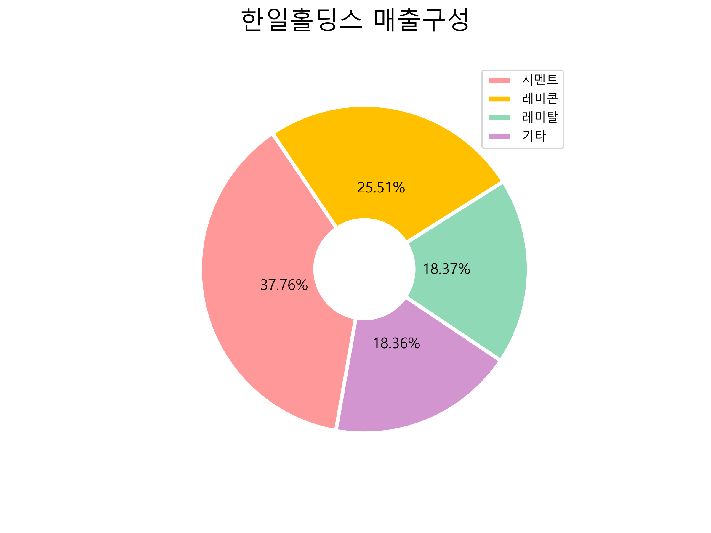 - 동사와 종속회사의 사업부문은 크게 시멘트 사업부문과 시멘트를 주원료로 2차제품을 생산하는 레미콘/레미탈 사업부문, 기타사업부문 등 4개 사업부문으로 구성되어 있음.