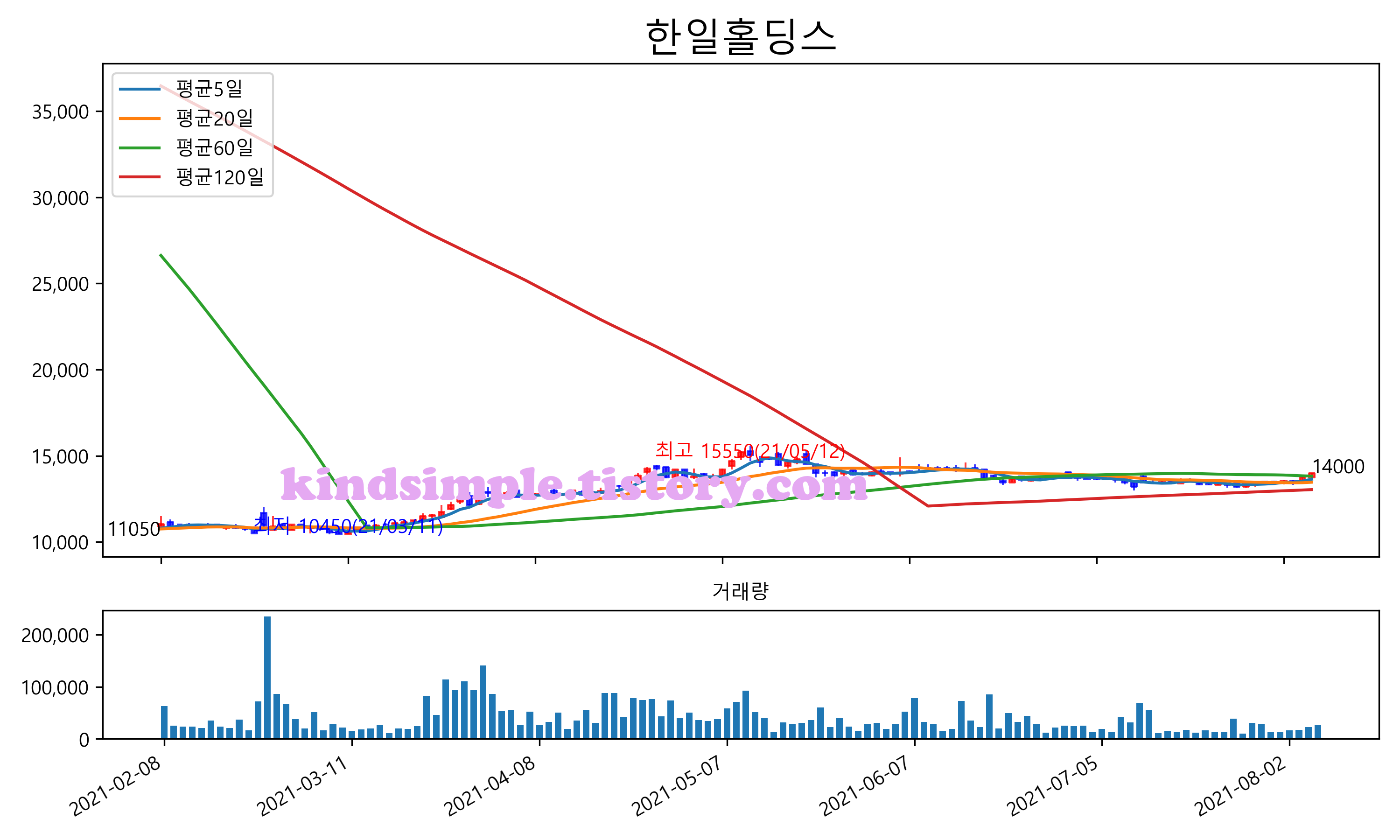 8월 5일 기준 주가는 14,000원 입니다. 아래는 최근 3년간의 주가흐름입니다.