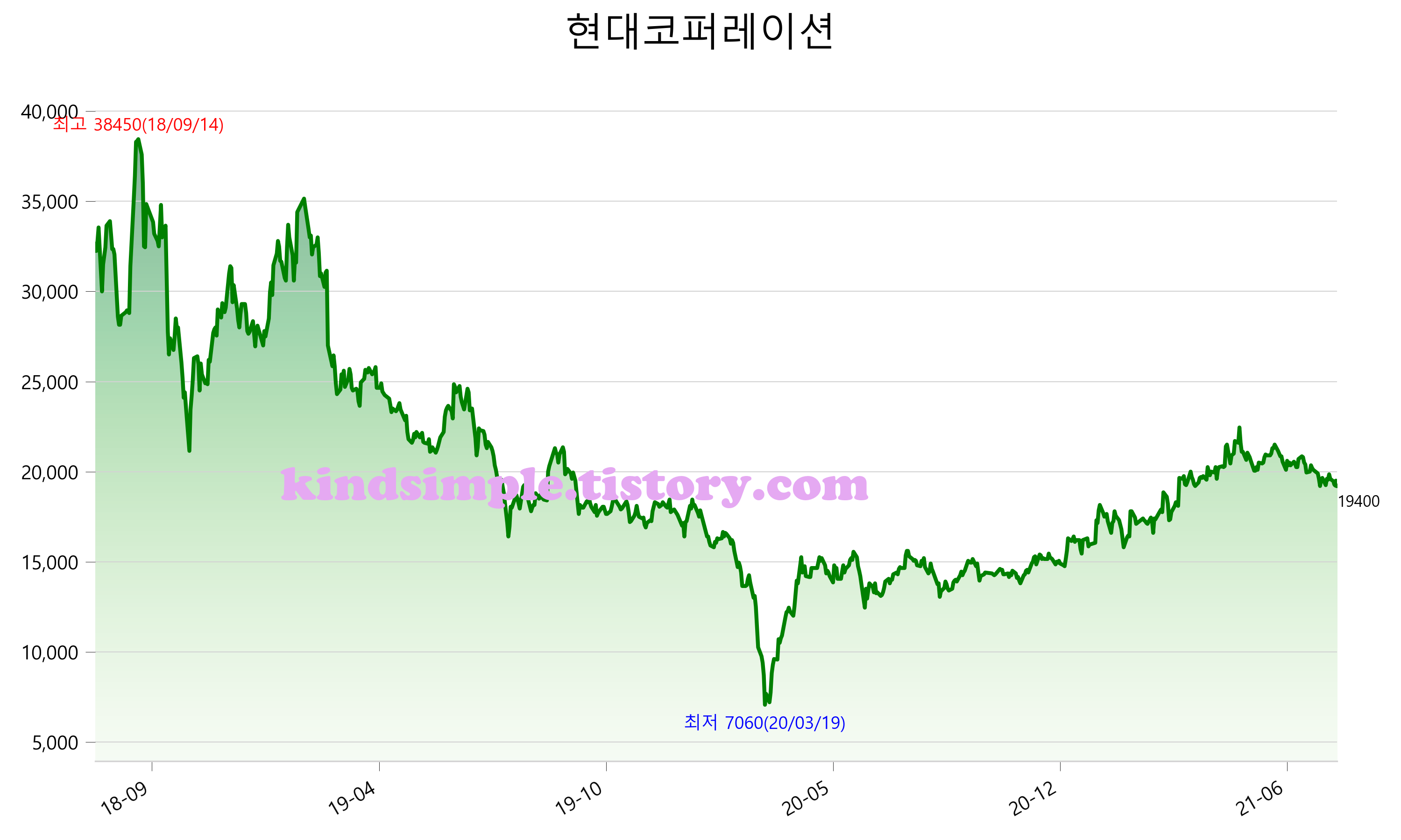 8월 5일 기준 주가는 19,400원 입니다. 아래는 최근 3년간의 주가흐름입니다.