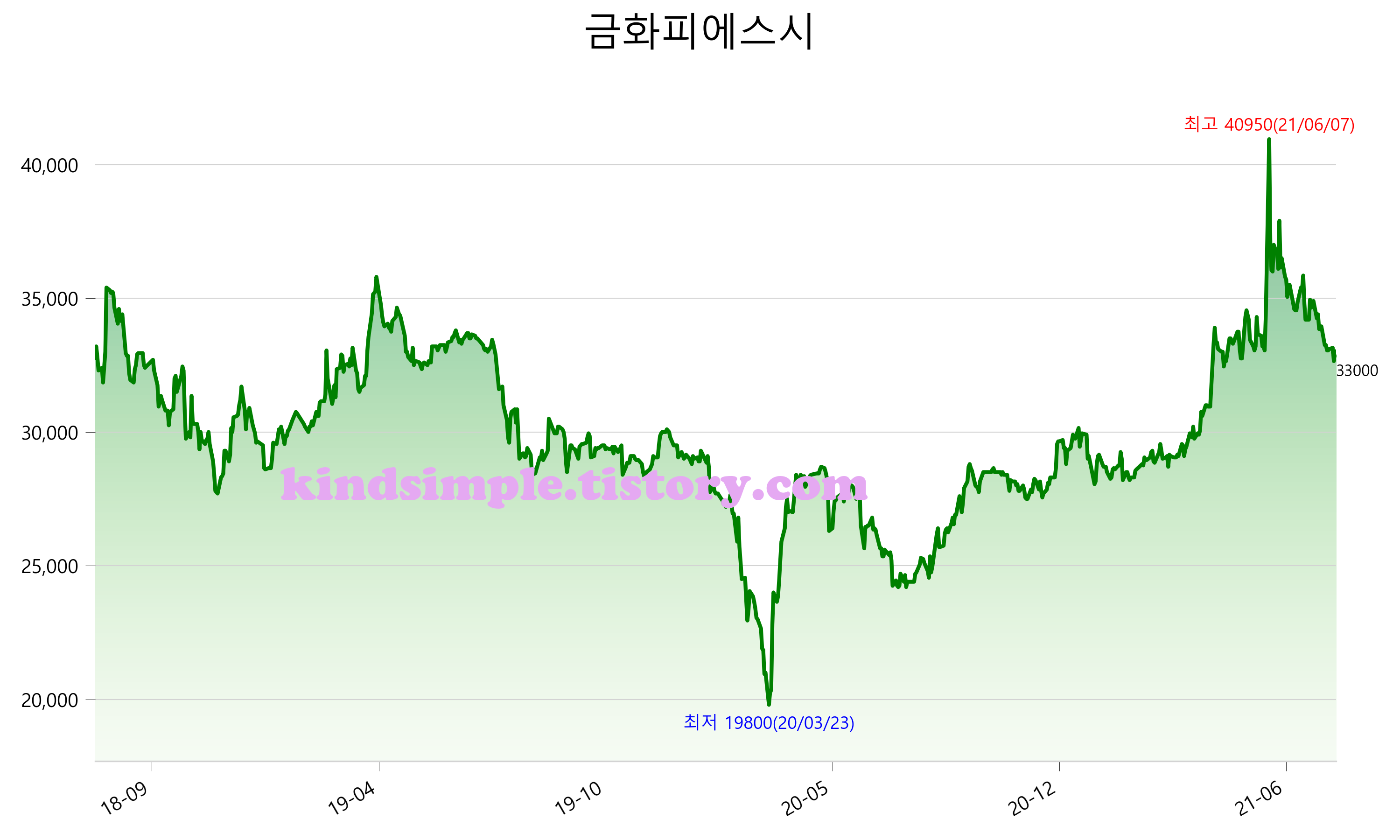 8월 5일 기준 주가는 33,000원 입니다. 아래는 최근 3년간의 주가흐름입니다.