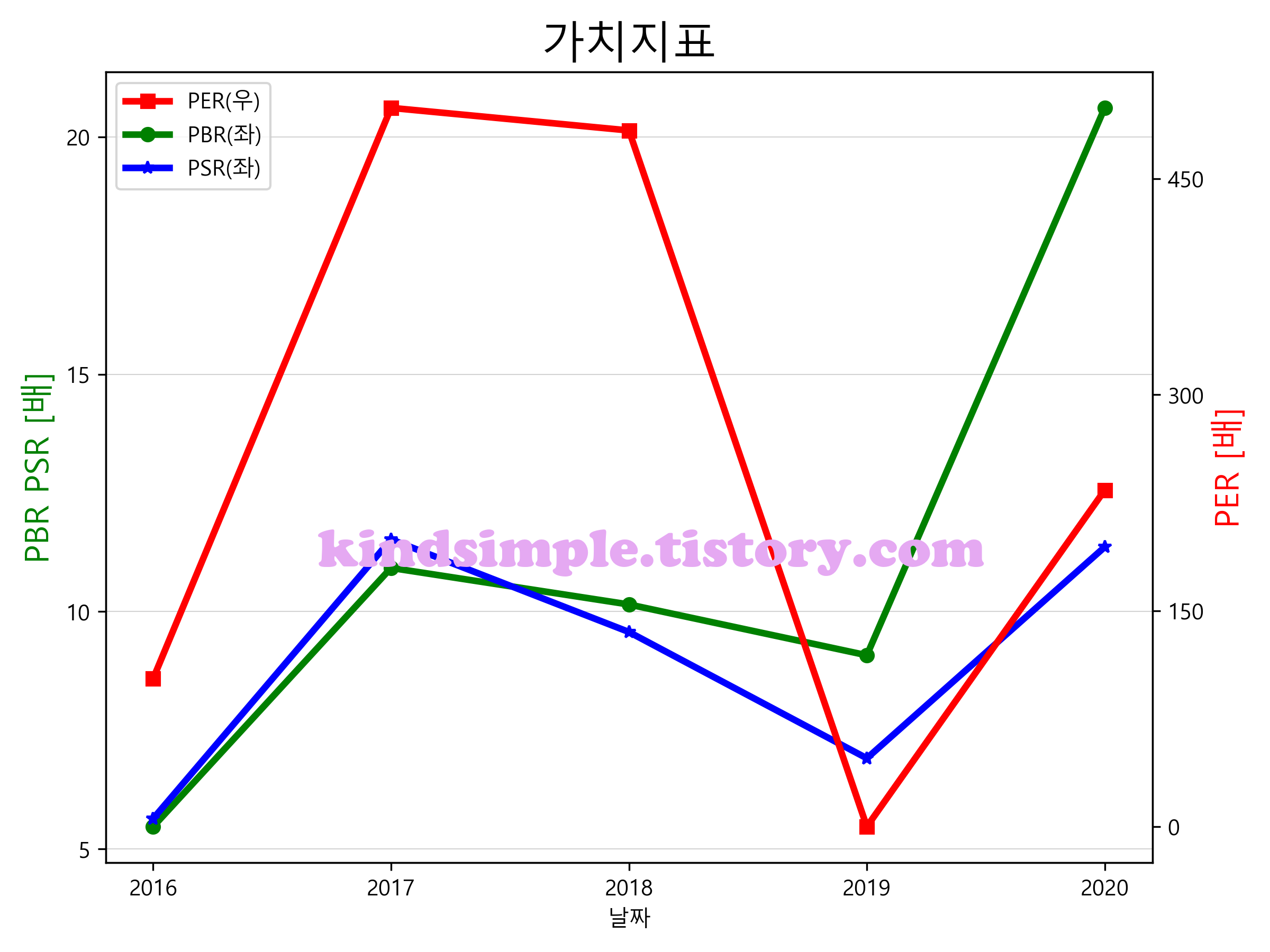 - PER : 108.87배, 동일업종 PER : -54.42배