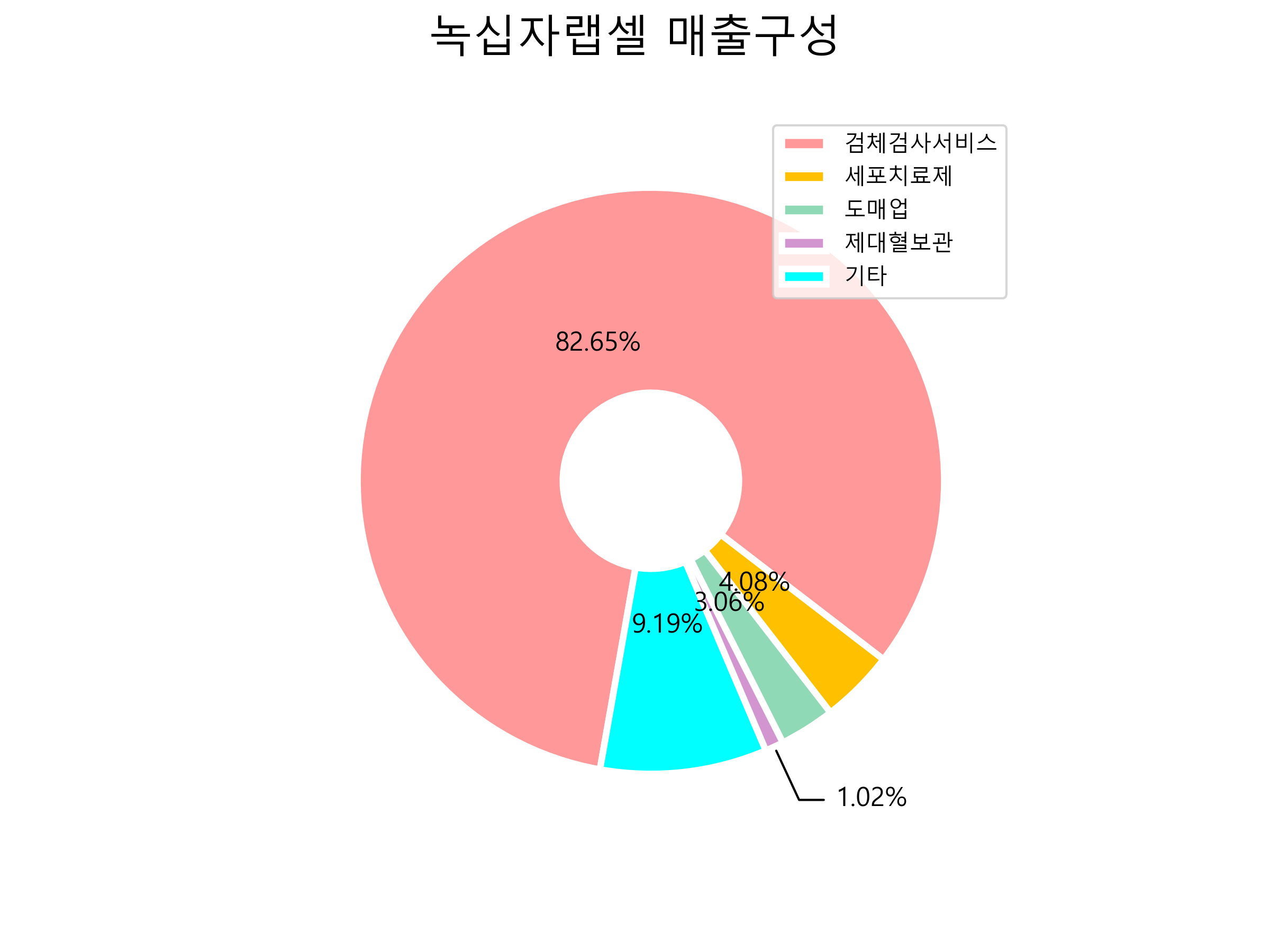 - 제대혈은행사업은 5개 업체가 시장의 90% 이상을 과점하고 있는 구조이며 3%의 시장점유율을 차지함.