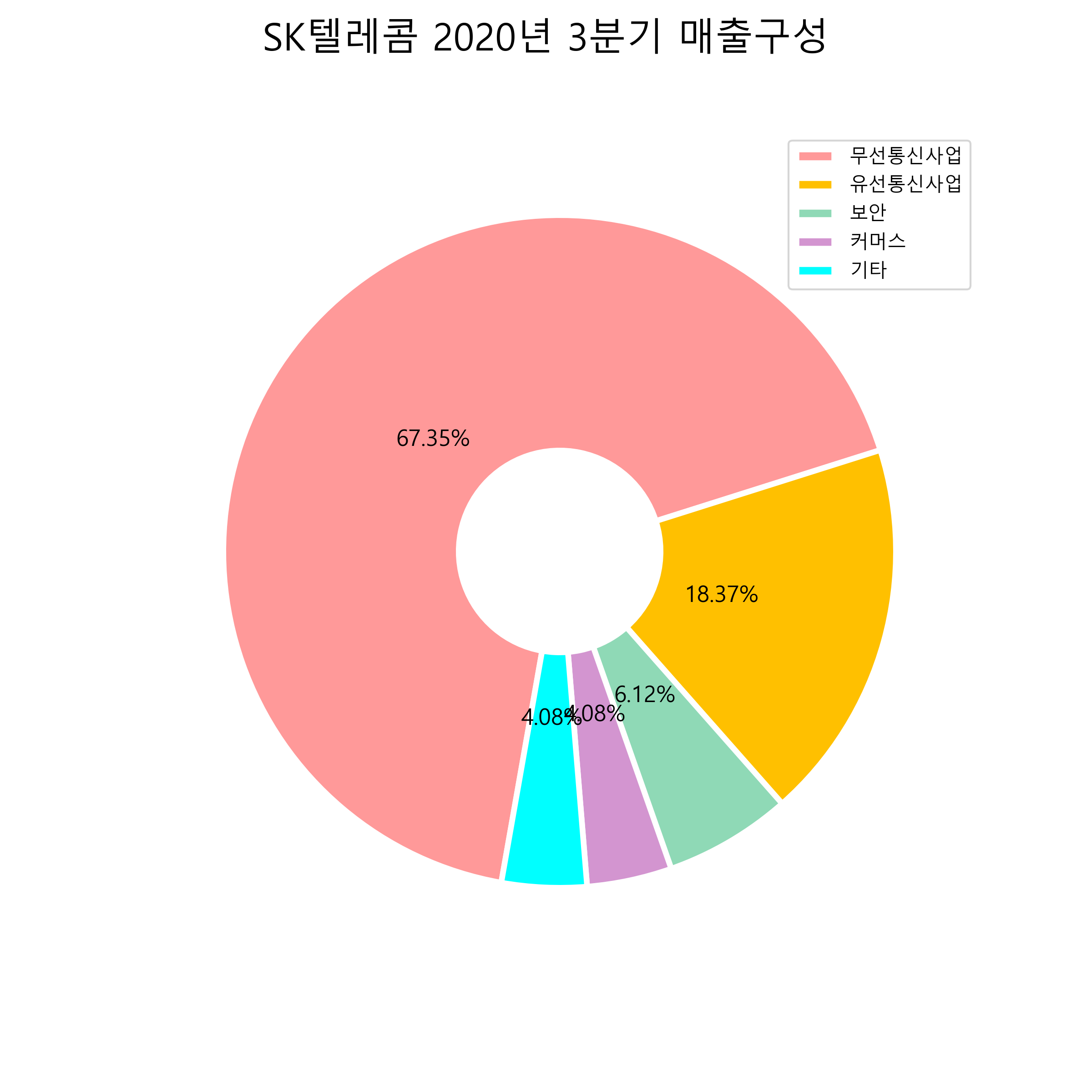 SK텔레콤의 2020년 3분기 매출구성입니다.