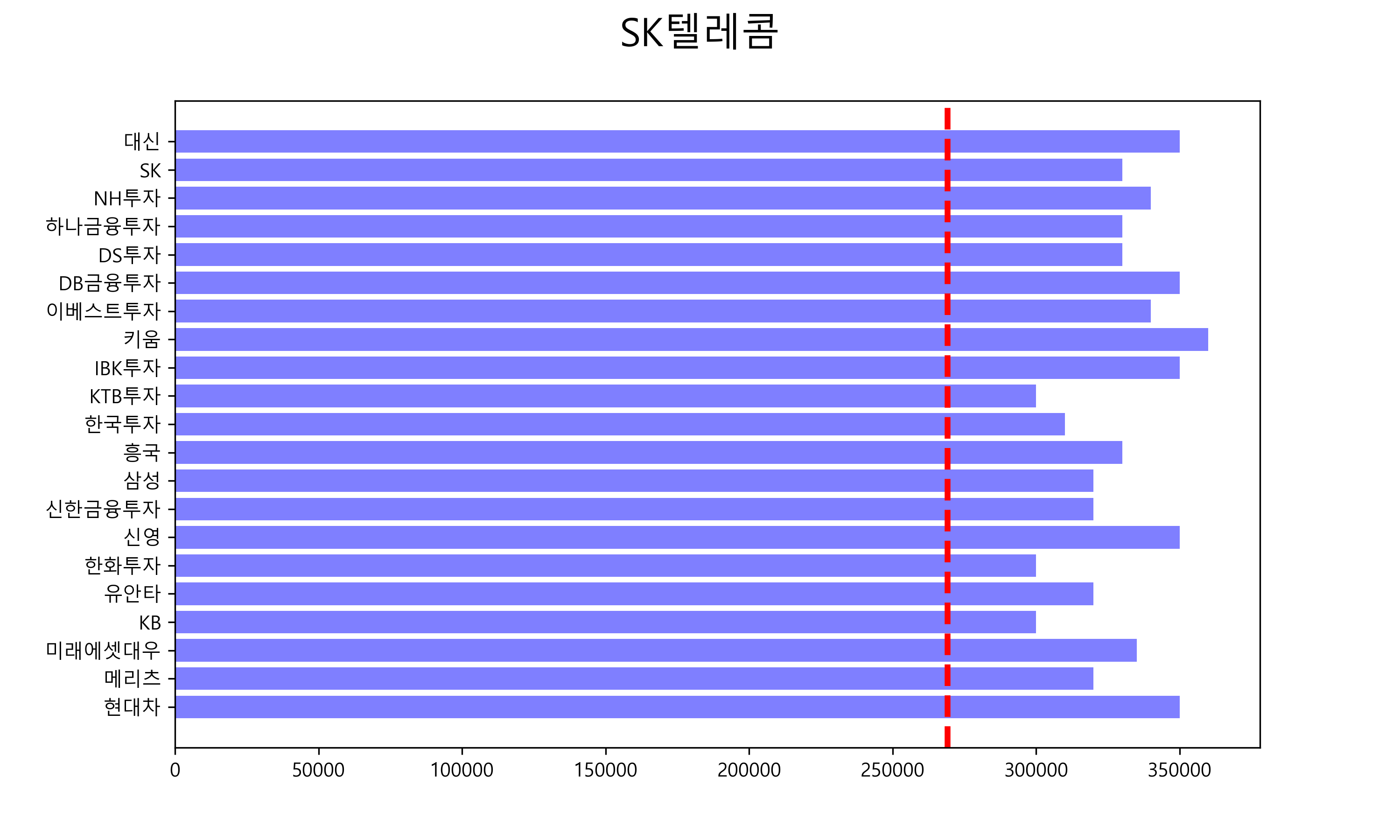 현재 주가보다 상승할 것이라고 예측한 증권사은 21곳이며 하락할 것이라고 예측한 증권사는 0곳 입니다. SK텔레콤의 2021년 03월 29일 기준 현재 주가로 269,000원 입니다. 목표주가 평균추정치는 330,238원 으로 현재 주가 대비 22.8% 높습니다.