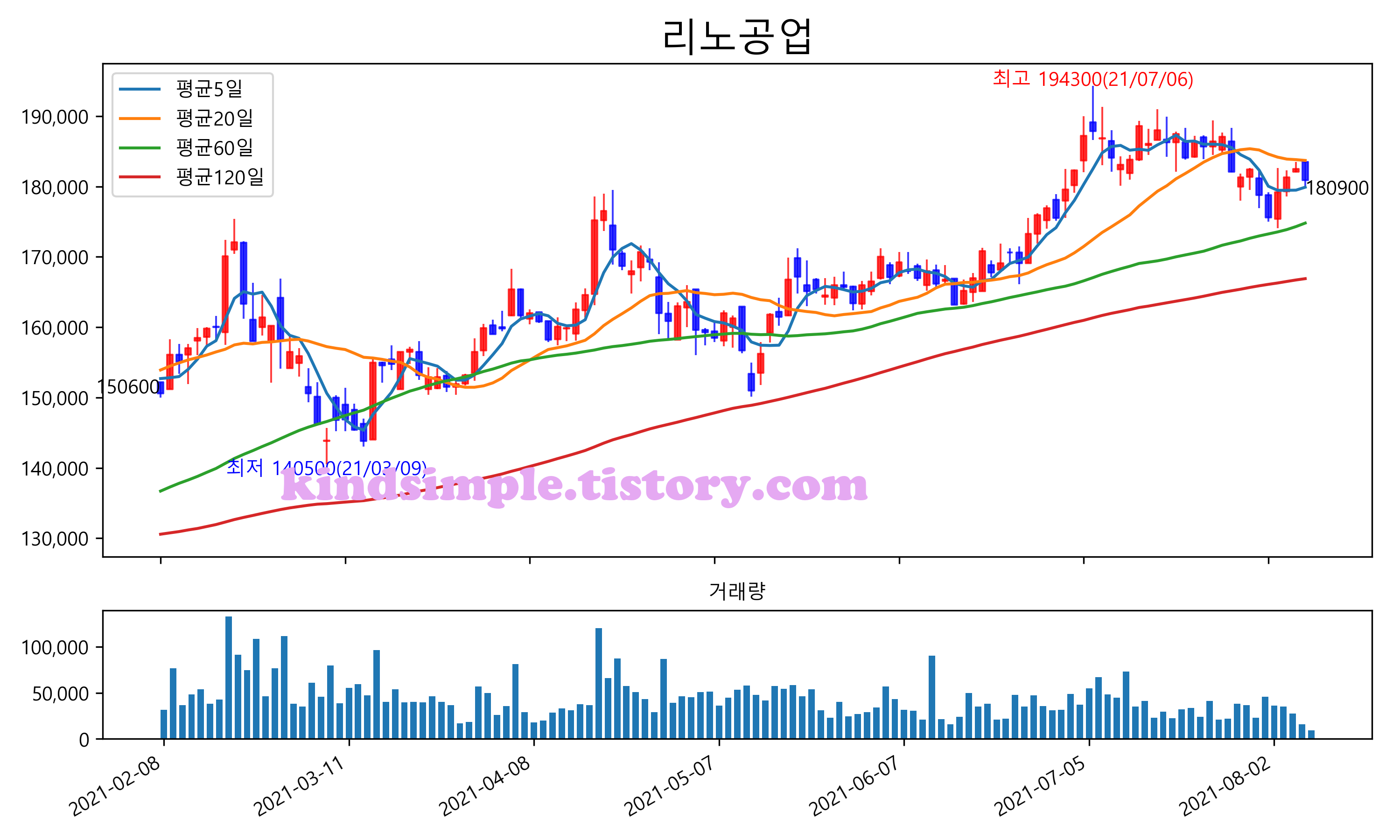 8월 6일 기준 주가는 180,900원 입니다. 아래는 최근 3년간의 주가흐름입니다.