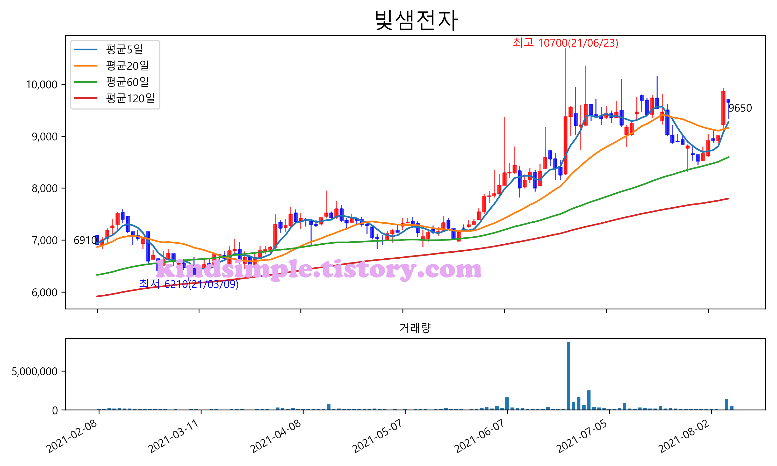 최근 6개월간 캔들차트 및 이동평균선입니다.
