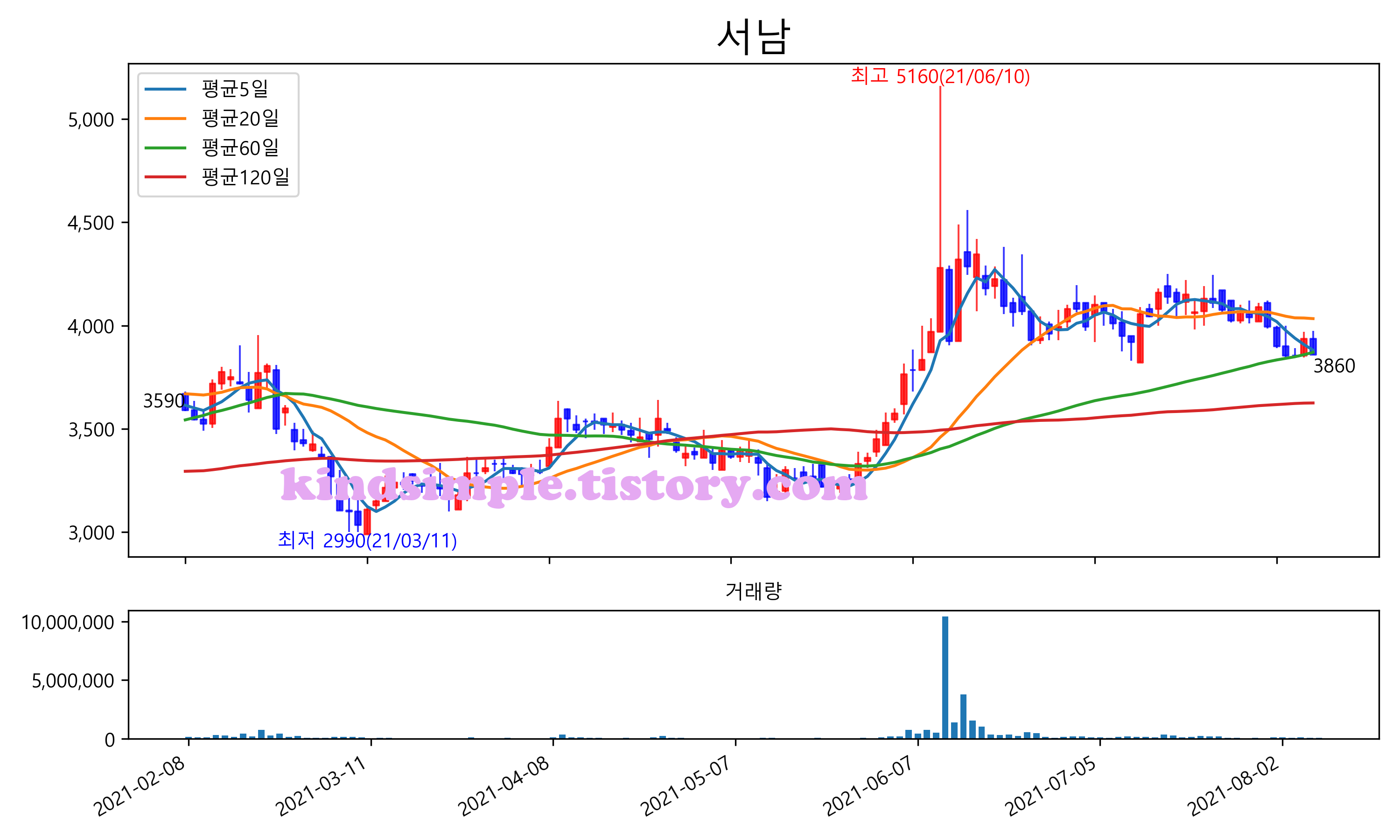 8월 6일 기준 주가는 3,860원 입니다. 아래는 최근 3년간의 주가흐름입니다.