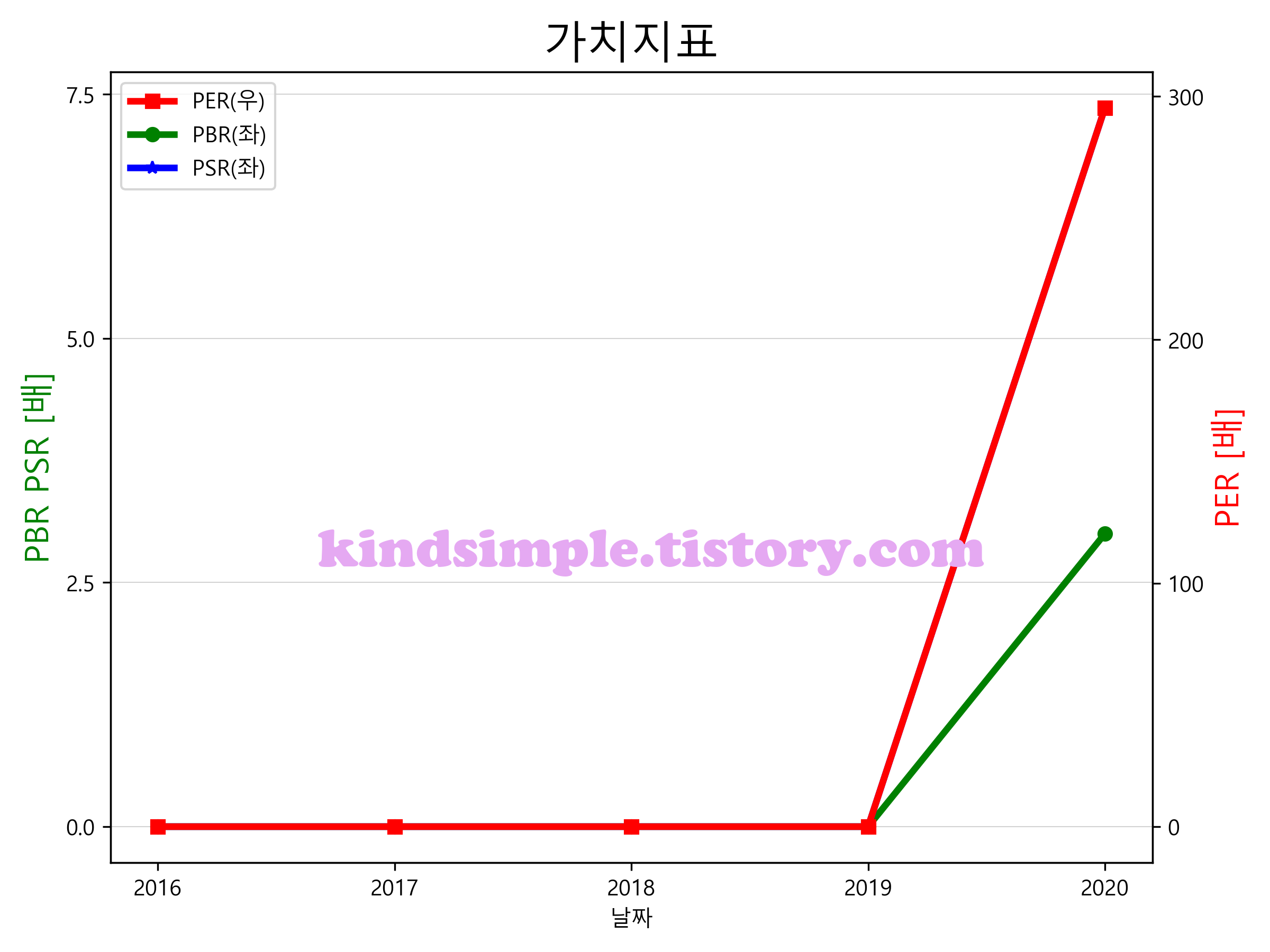 - PER : 293.97배, 동일업종 PER : 22.36배