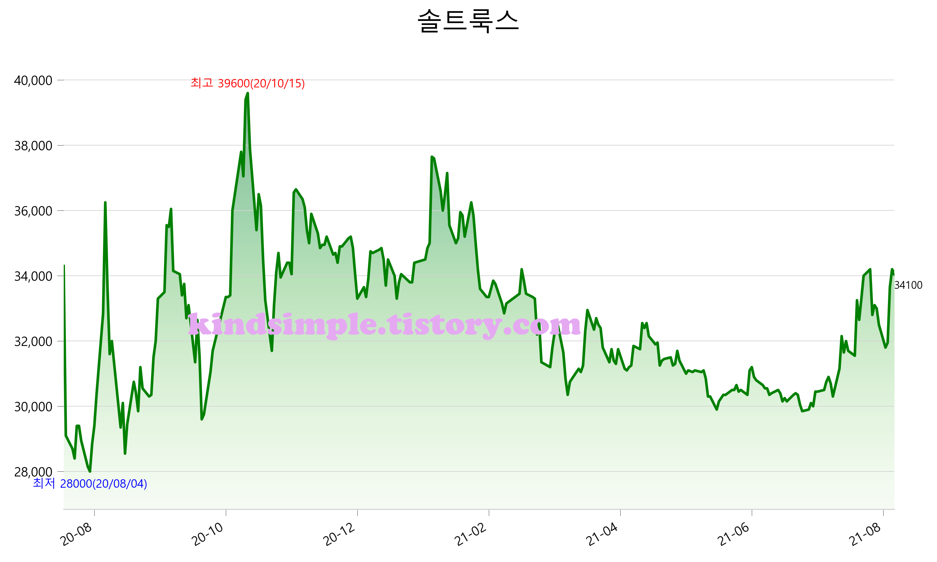 52주 최고가는 39,600원(2020-10-15), 52주 최저가는 28,550원(2020-08-20)으로 52주간 변동률은 12.4% 입니다.