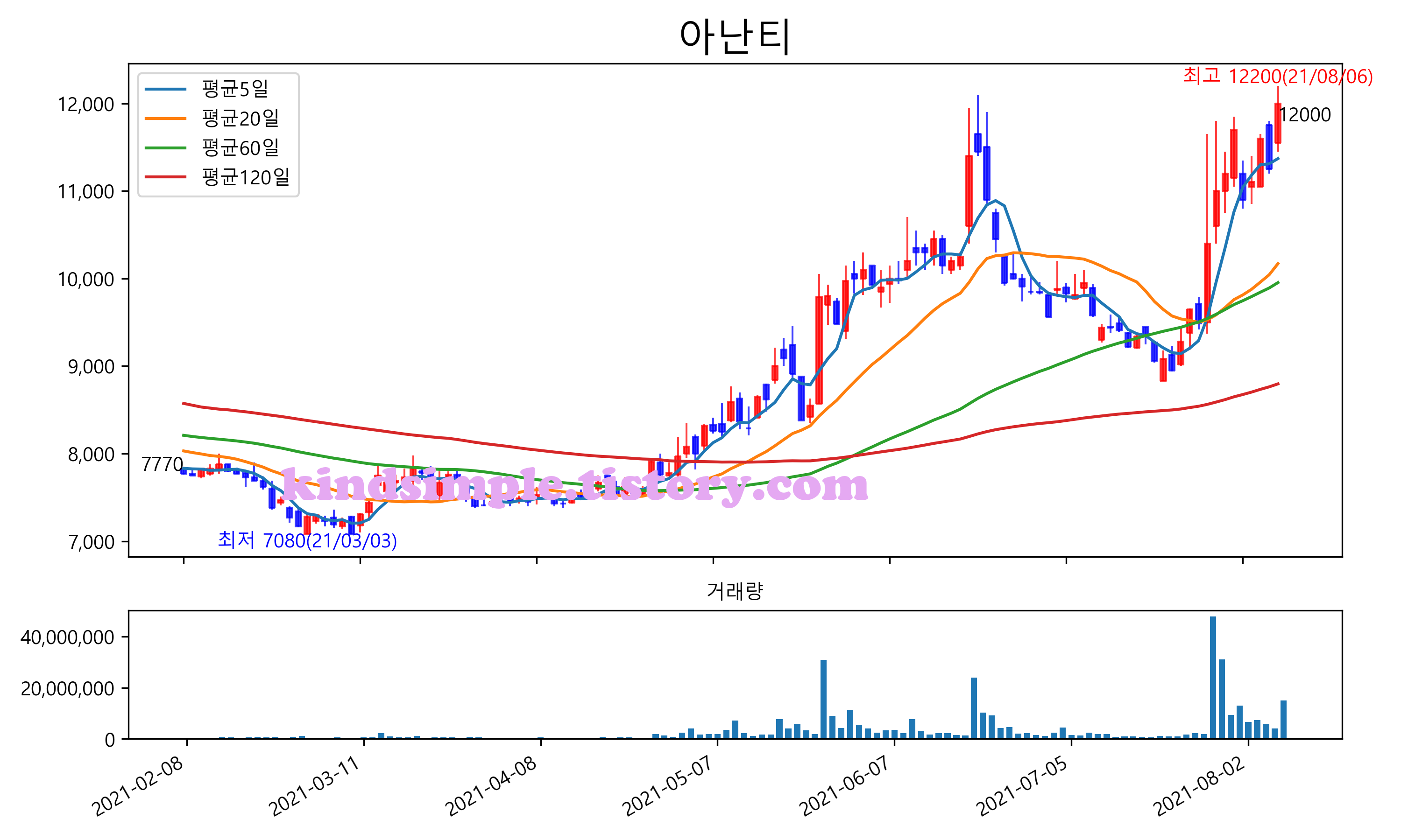 최근 6개월간 캔들차트 및 이동평균선입니다.