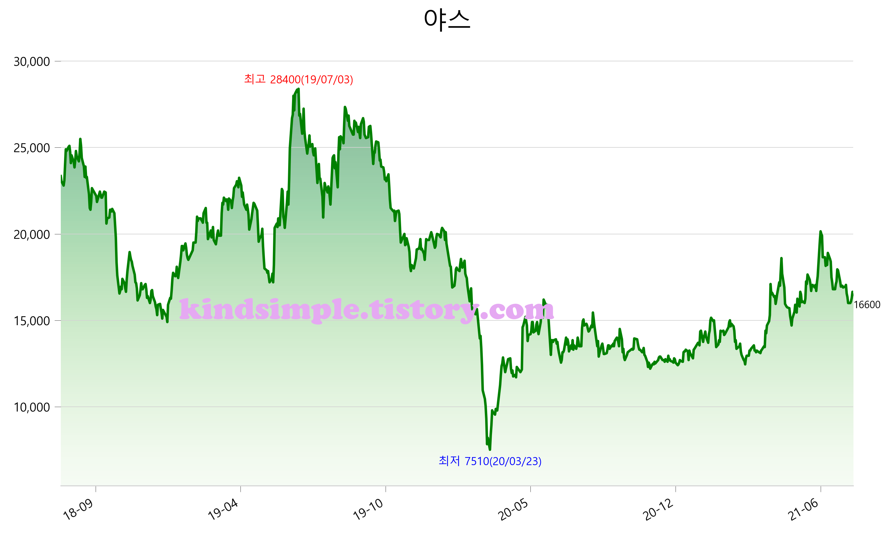 8월 7일 기준 주가는 16,600원 입니다. 아래는 최근 3년간의 주가흐름입니다.