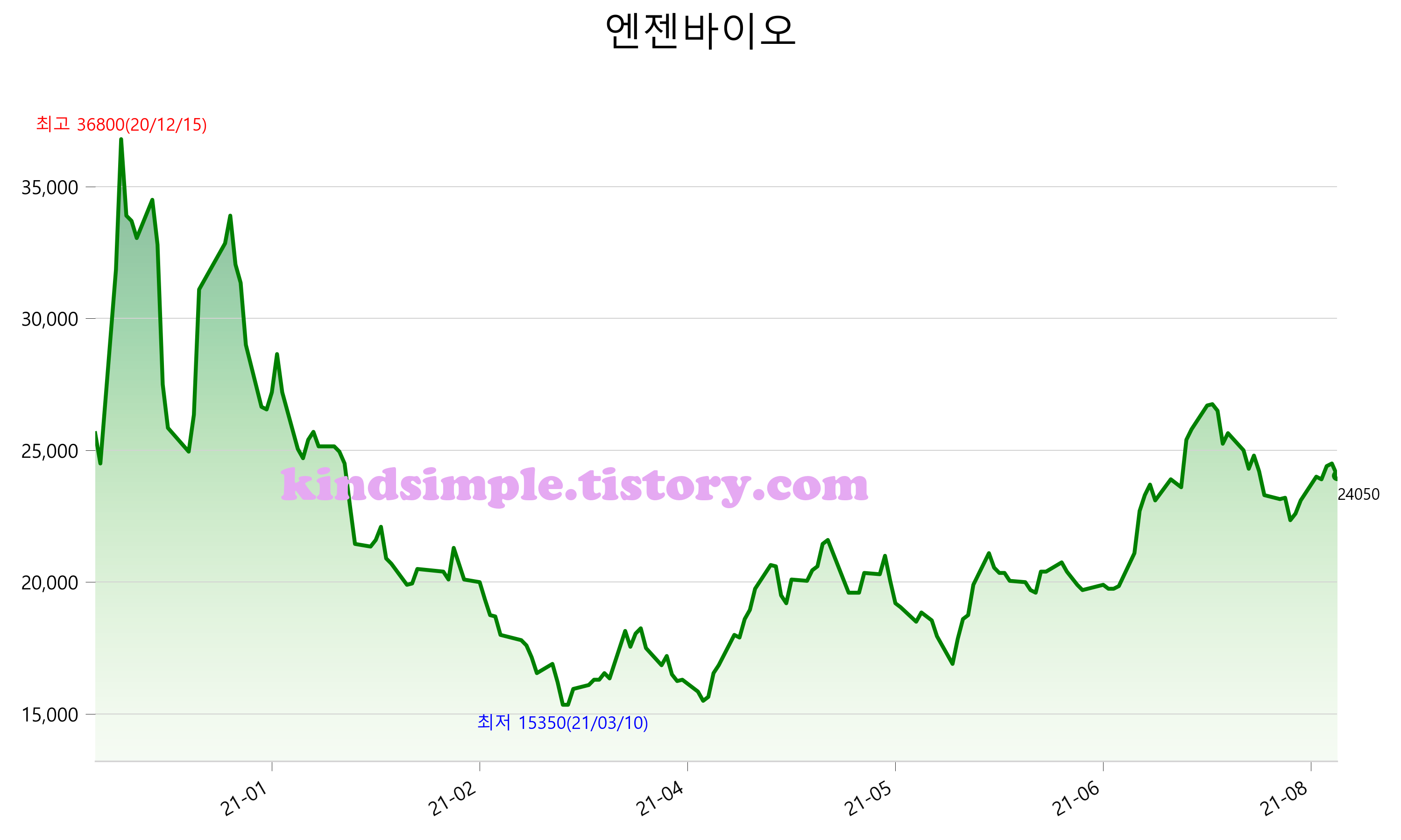 52주 최고가는 36,800원(2020-12-15), 52주 최저가는 15,350원(2021-03-10)으로 52주간 변동률은 -6.2% 입니다.