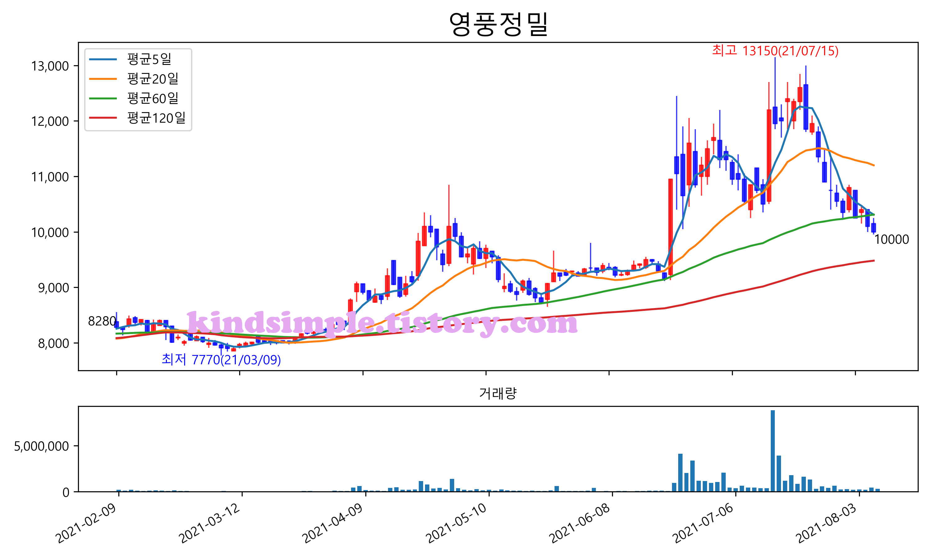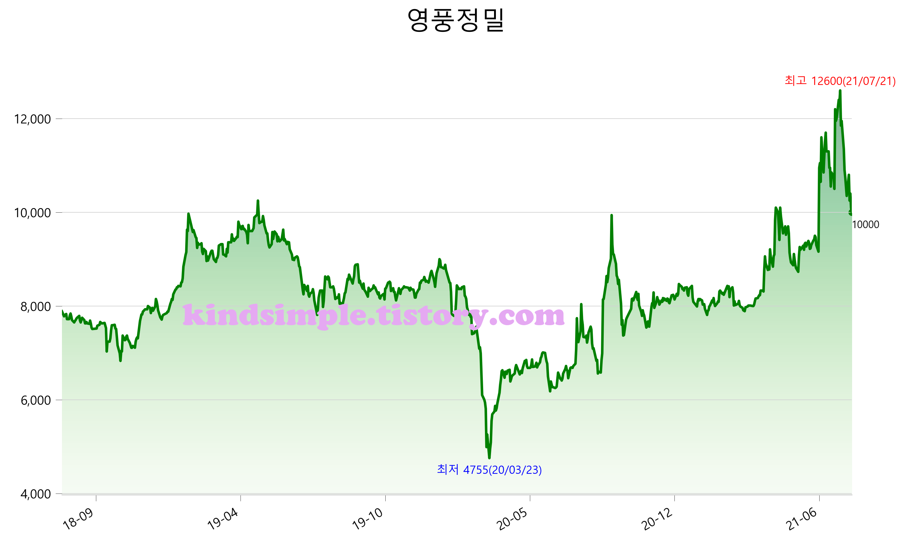 8월 8일 기준 주가는 10,000원 입니다. 아래는 최근 3년간의 주가흐름입니다.
