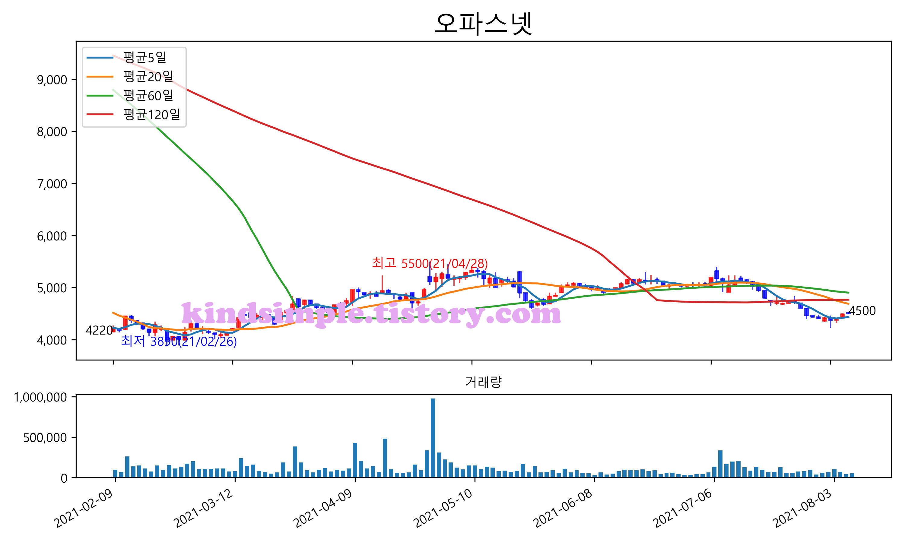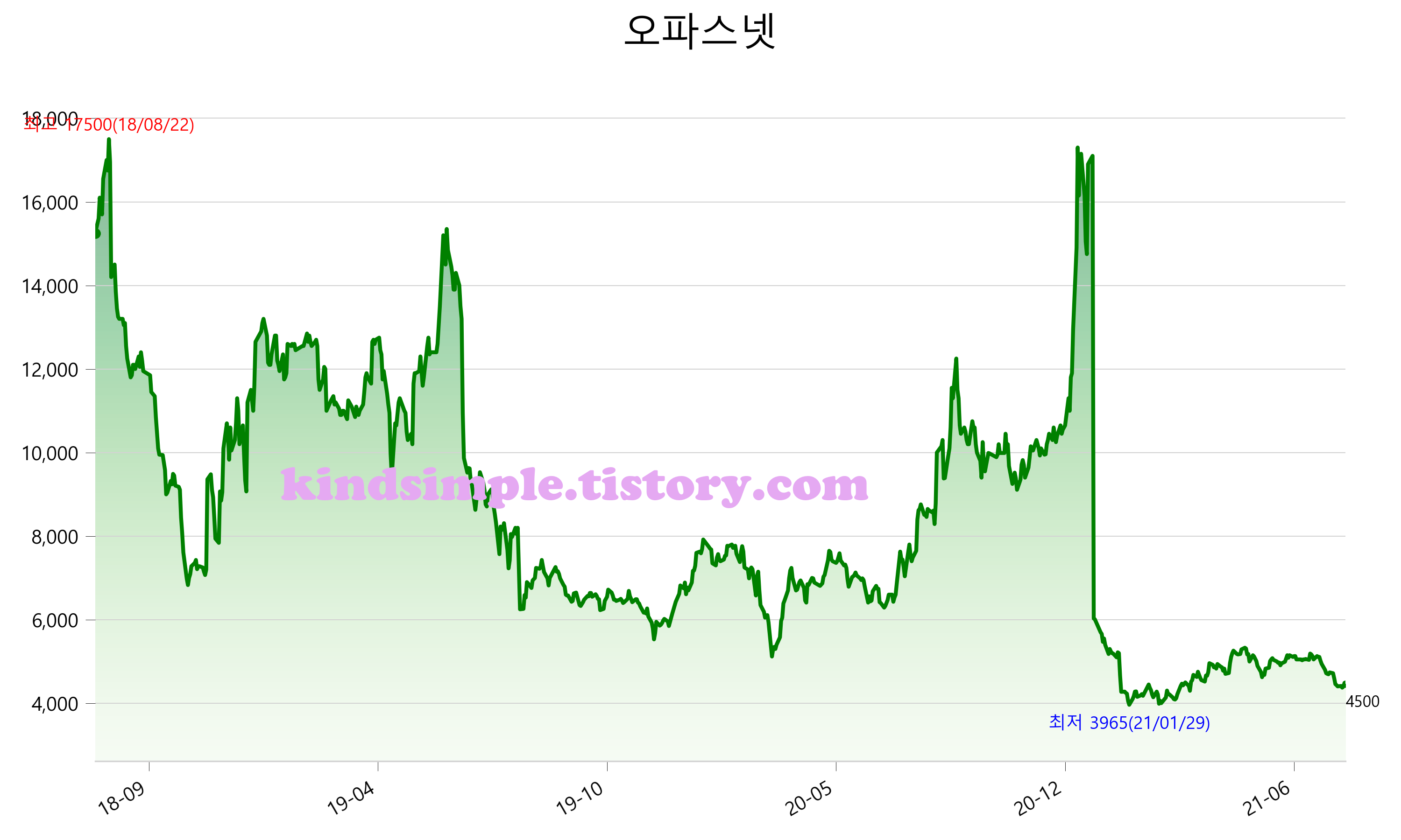 8월 8일 기준 주가는 4,500원 입니다. 아래는 최근 3년간의 주가흐름입니다.