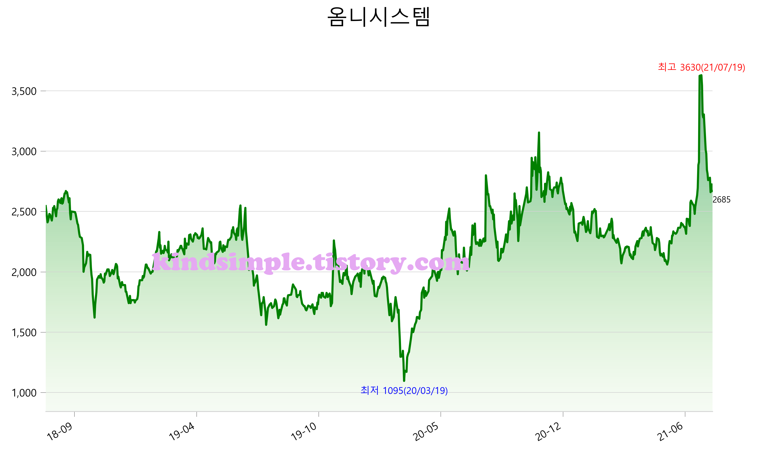8월 8일 기준 주가는 2,685원 입니다. 아래는 최근 3년간의 주가흐름입니다.