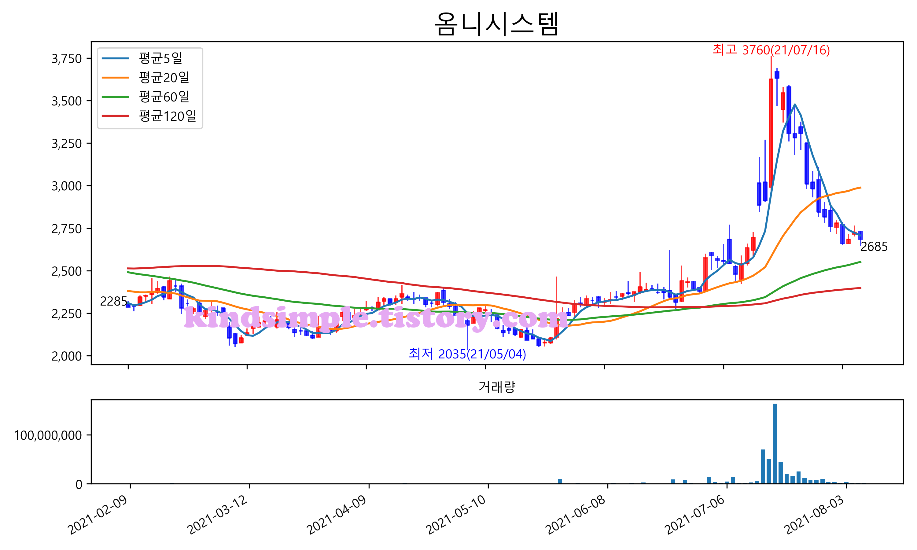 최근 6개월간 캔들차트 및 이동평균선입니다.