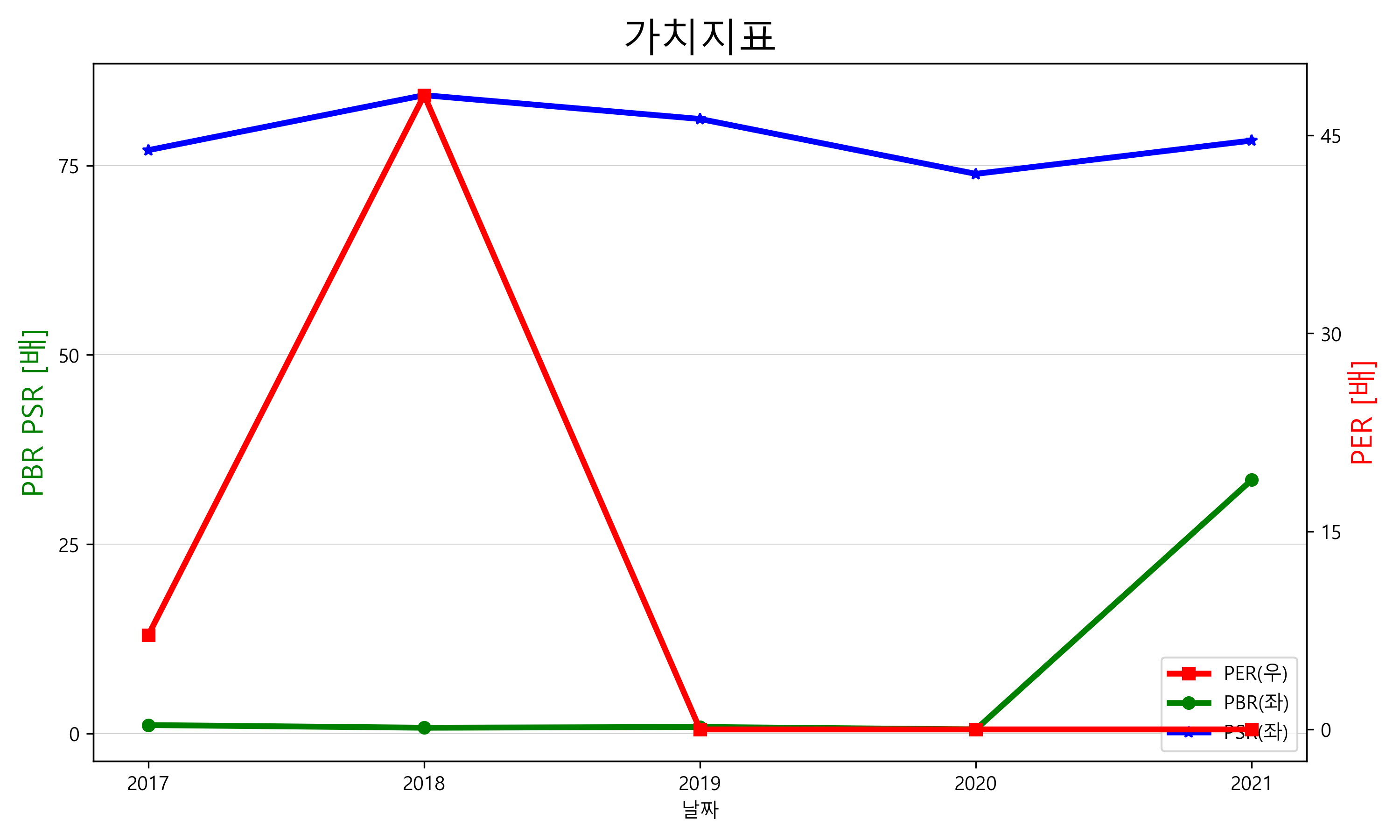 게임스탑의 PER, PBR, PSR 그래프입니다.