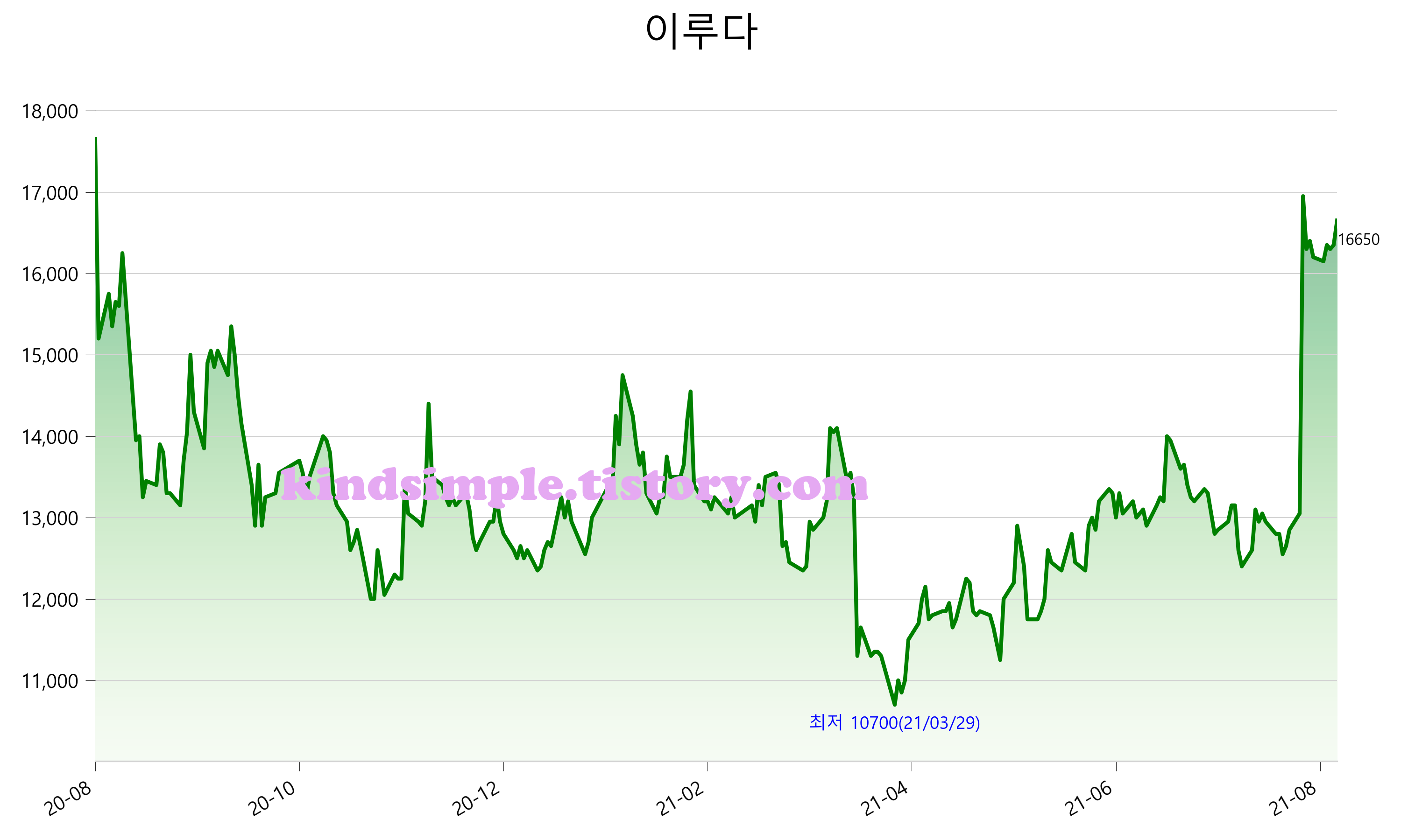 52주 최고가는 16,950원(2021-07-27), 52주 최저가는 10,700원(2021-03-29)으로 52주간 변동률은 5.7% 입니다.