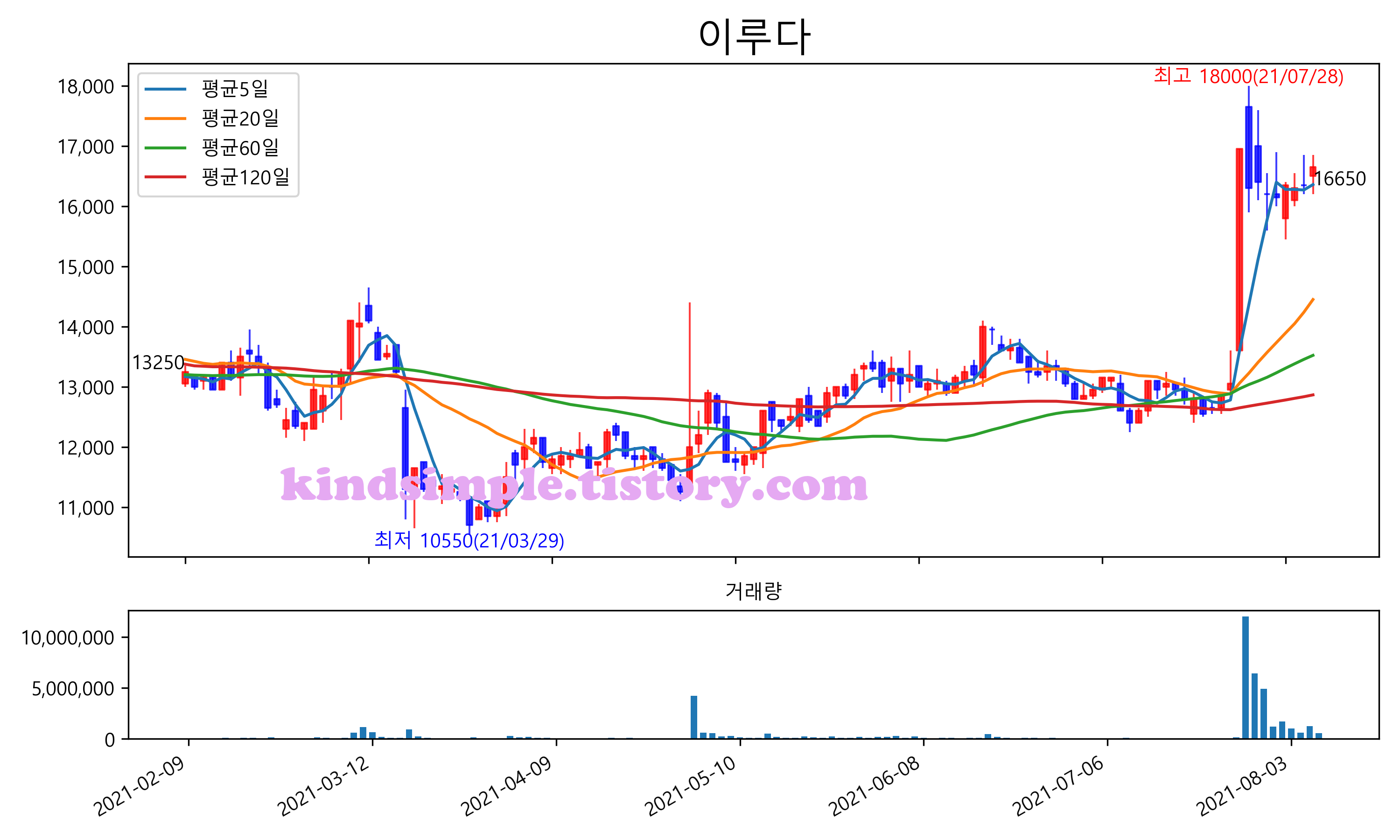 최근 6개월간 캔들차트 및 이동평균선입니다.