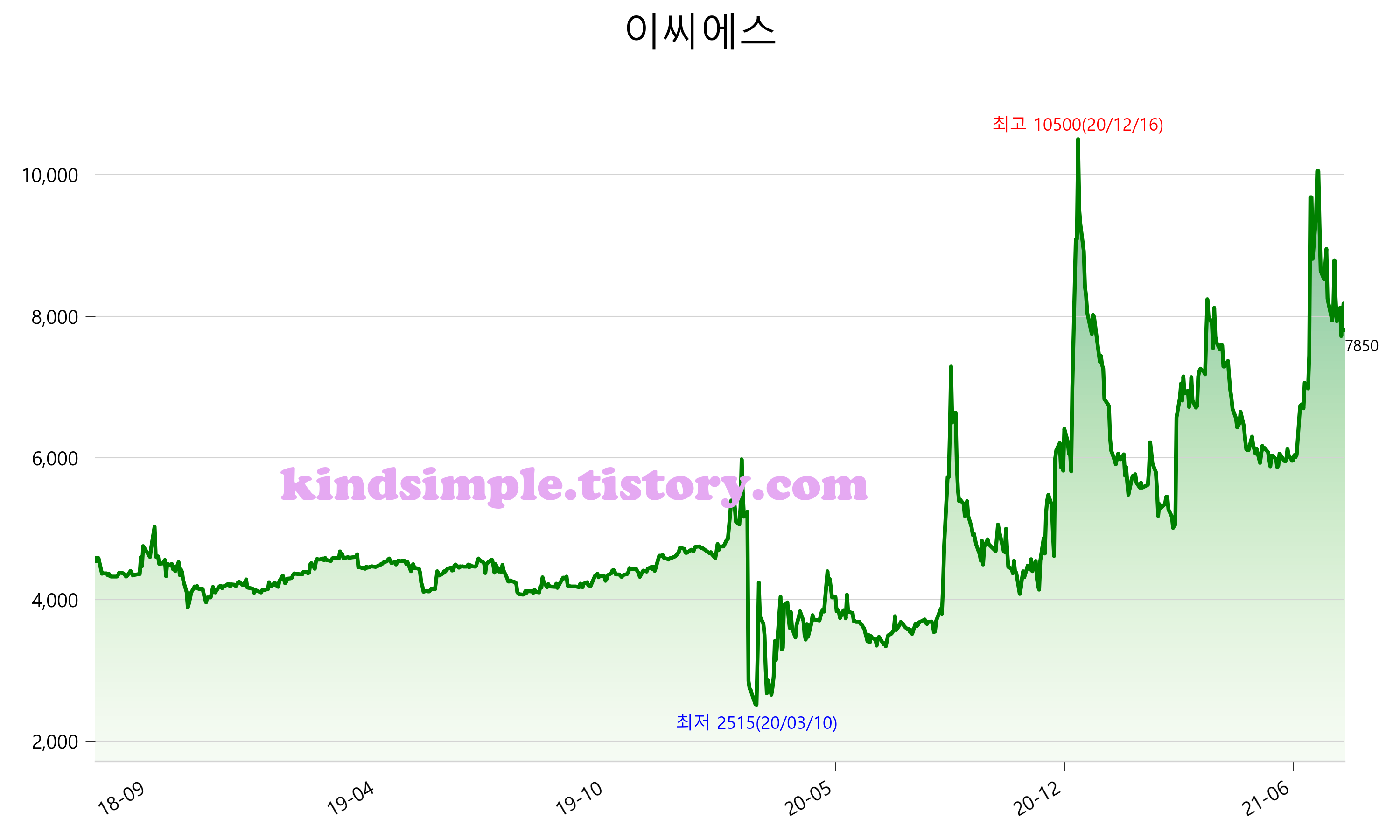 52주 최고가는 10,500원(2020-12-16), 52주 최저가는 3,540원(2020-08-12)으로 52주간 변동률은 112.7% 입니다.
