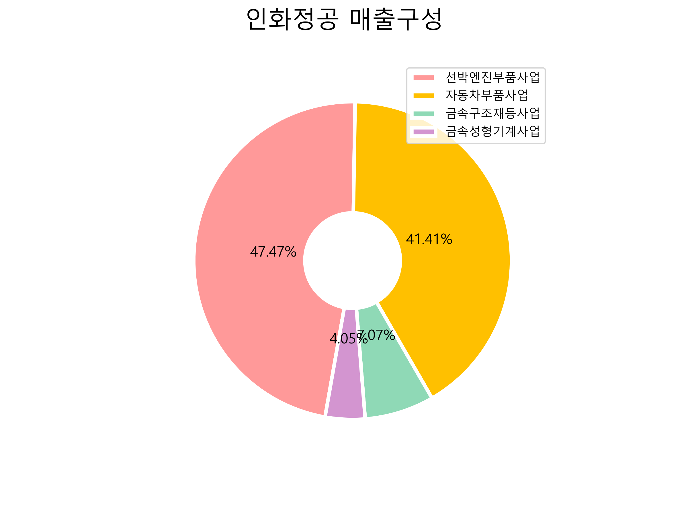 인화정공의 매출구성입니다.
