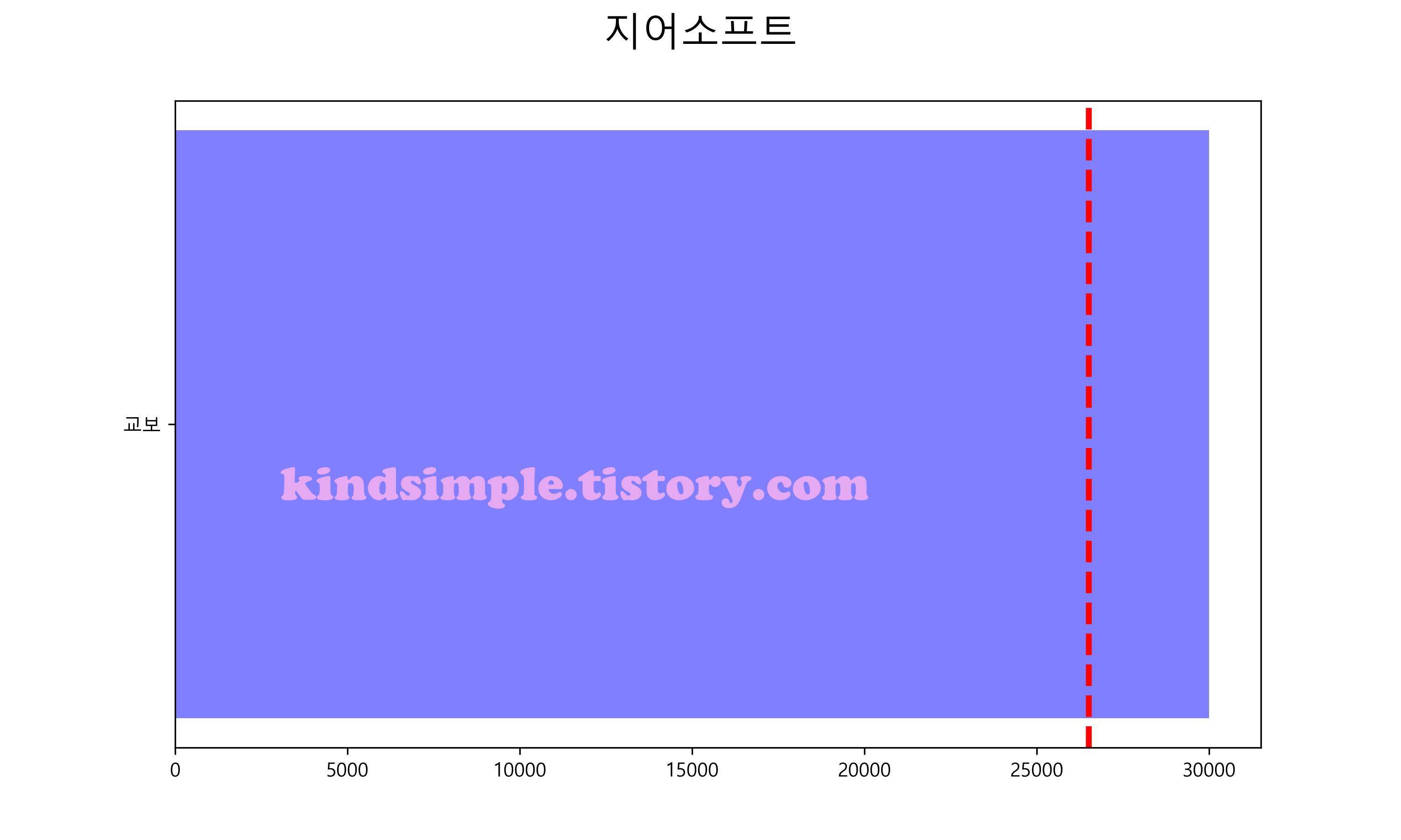 아래 그래프의 빨간색 점선이 현재 주가입니다.