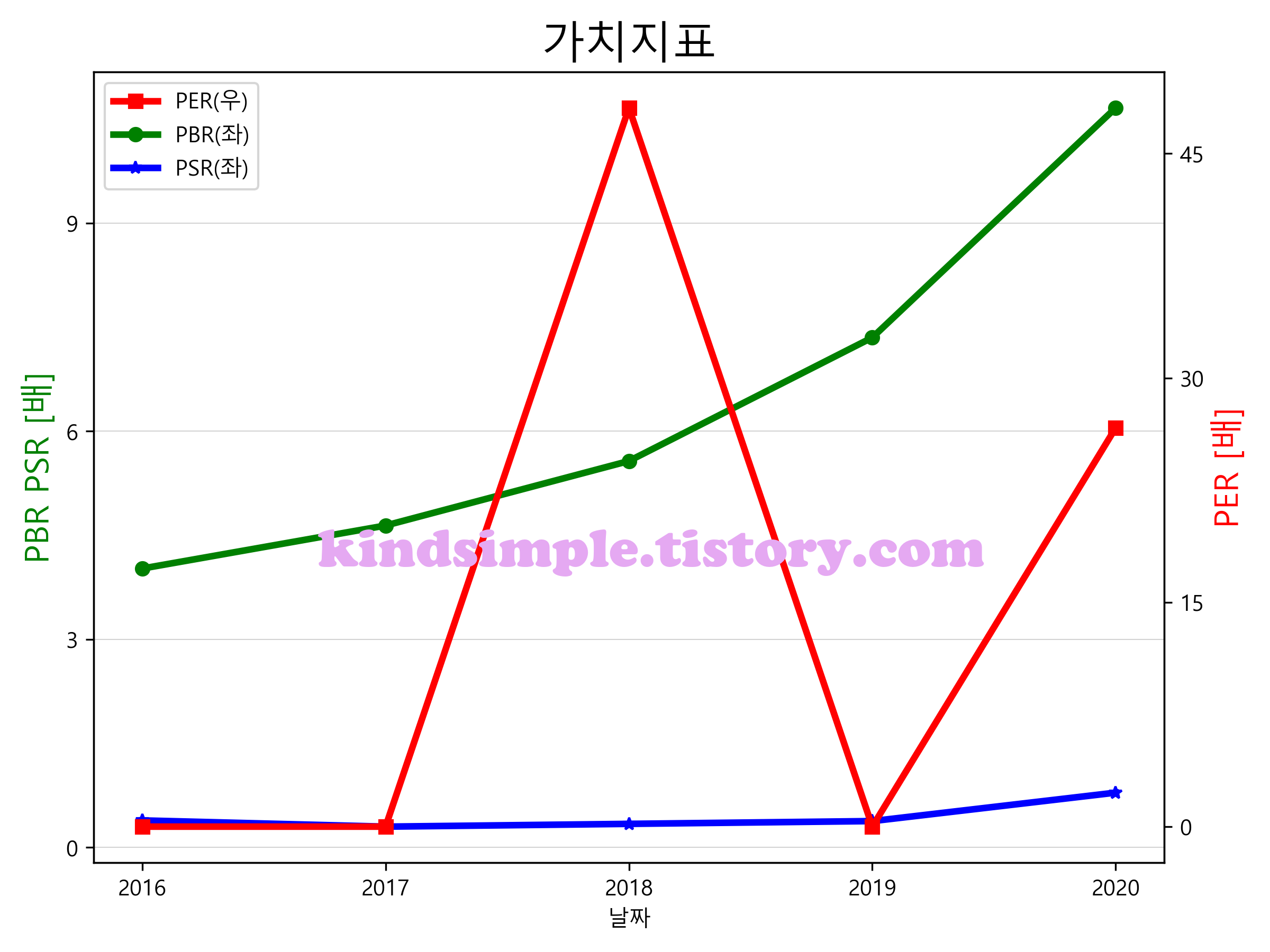 - PER : 97.79배, 동일업종 PER : 116.29배