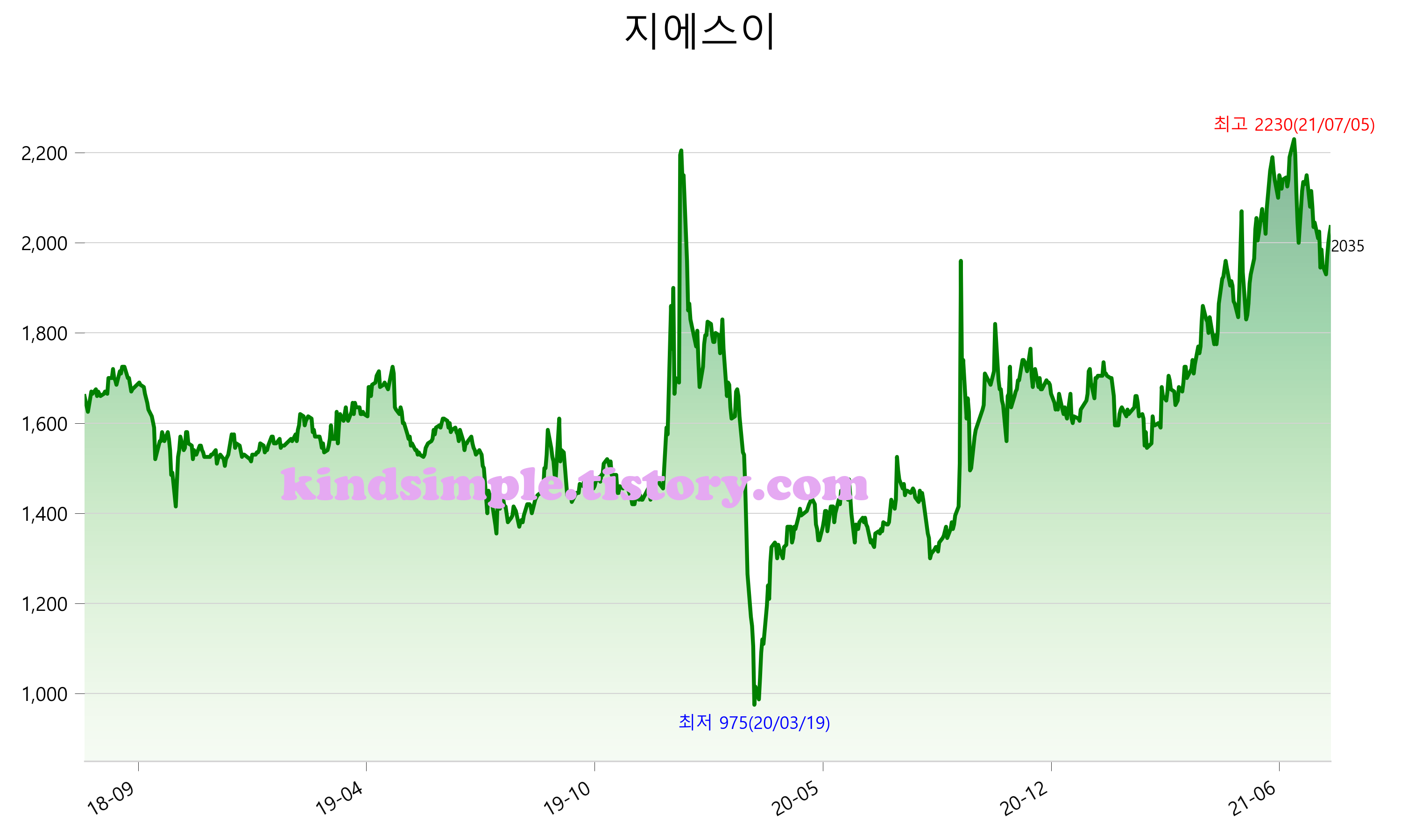 8월 8일 기준 주가는 2,035원 입니다. 아래는 최근 3년간의 주가흐름입니다.