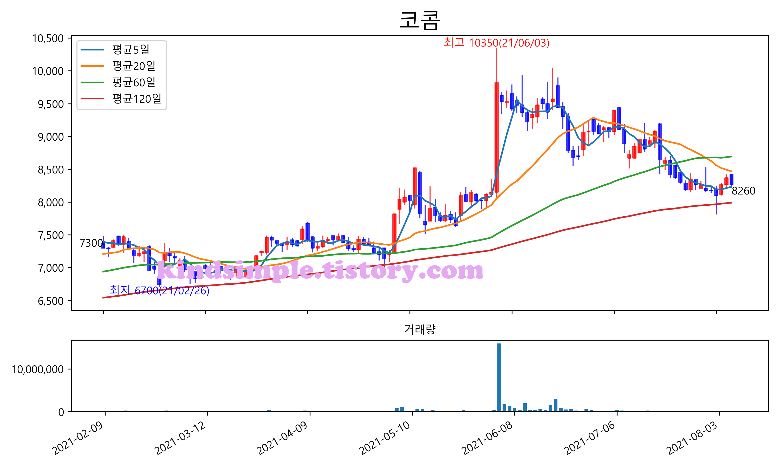 최근 6개월간 캔들차트 및 이동평균선입니다.