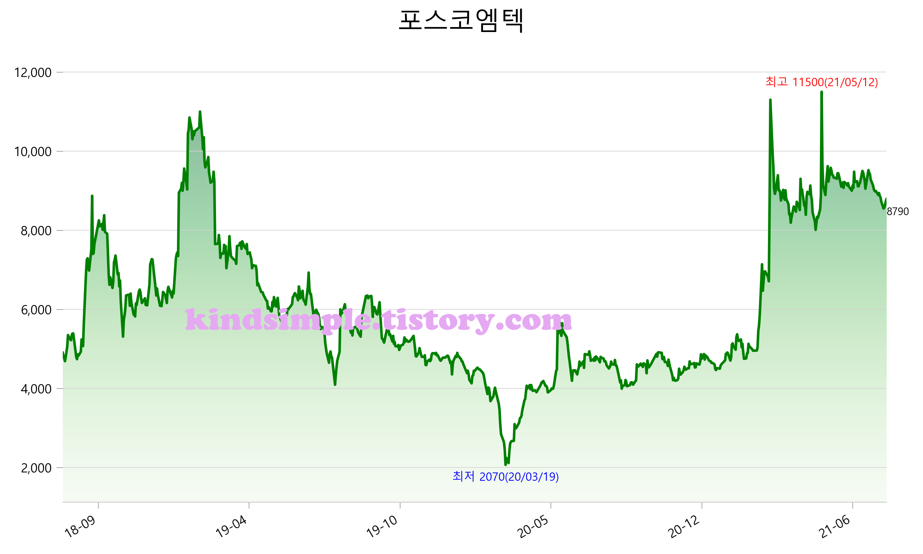 8월 8일 기준 주가는 8,790원 입니다. 아래는 최근 3년간의 주가흐름입니다.