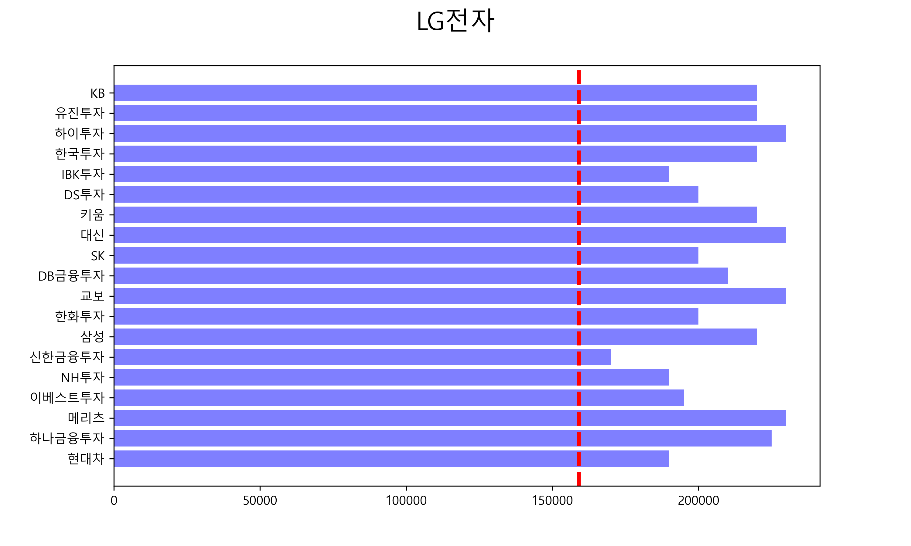 아래 그래프의 빨간색 점선이 현재 주가입니다.