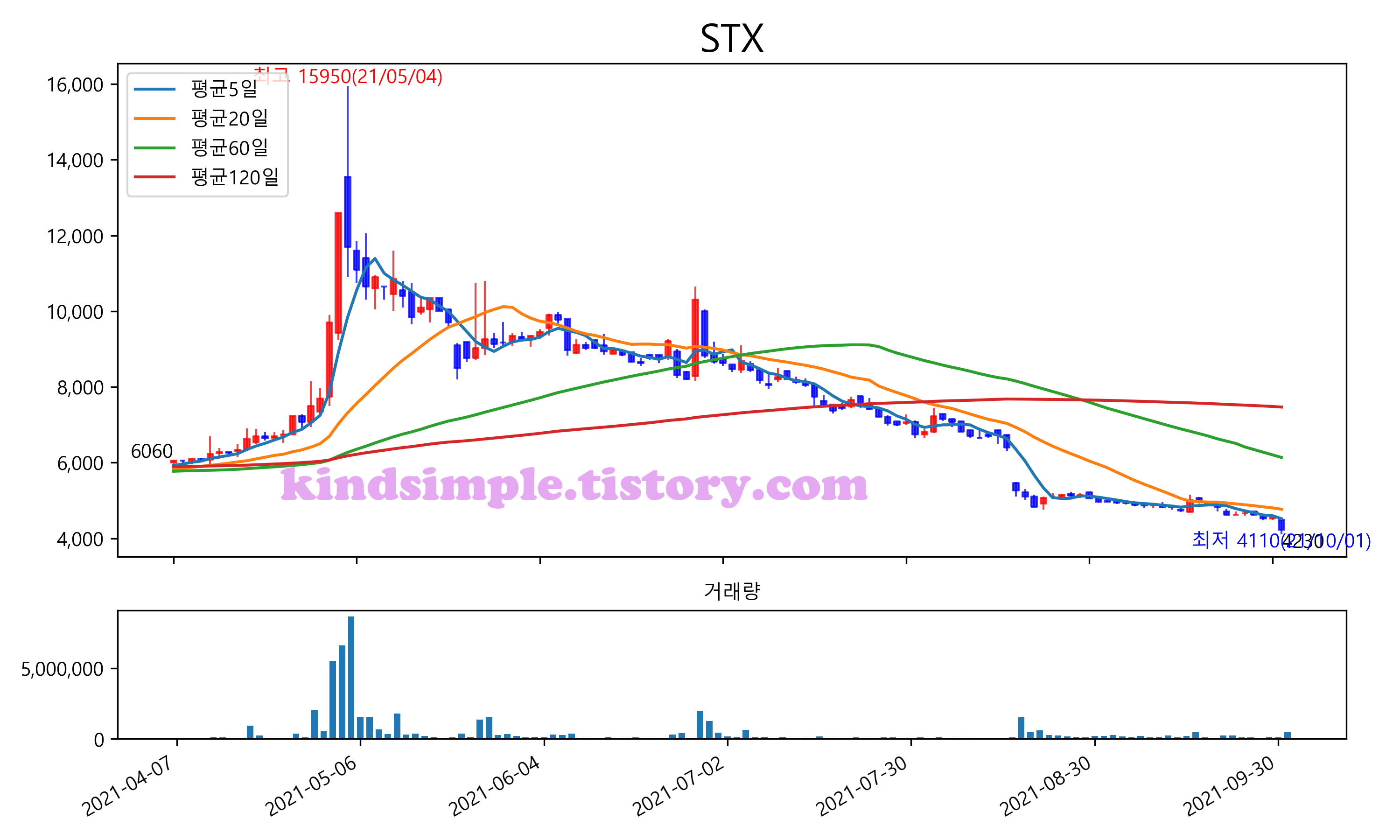 최근 6개월간 캔들차트 및 이동평균선입니다.
